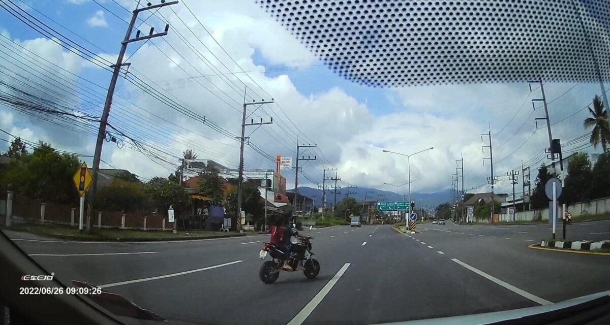 โดยใช้ผู้เฟสบุ๊กชื่อ “Fluk Tnk” ได้โพสต์ภาพและคลิปเหตุการณ์ระทึกวินาทีเฉียดตาย พร้อมข้อความว่า “เกินไปเน้อ ขับรถแบบนี้ยอมใจเลยครับ” ซึ่งเป็นคลิปจากกล้องหน้ารถยนต์จับภาพวินาทีรถจักรยานยนต์ซ้อน 2 ขับข้ามจากเลนซ้ายสุดตัดหน้ารถยนต์อย่างกระทันหัน เพื่อจะกลับรถตรงยูเทิร์น แต่โชคดีคนขับรถยนต์เก๋งมีสติหักหลบข้ามช่องยูเทิร์นไปยังเลนสวนทาง ซึ่งก็เป็นจังหวะที่ไม่มีรถวิ่งสวนทางมา ทำให้ปลอดภัยทั้งคู่ หลังเกิดเหตุคนขับมอเตอร์ไซค์ก็ขี่รถต่อไปโดยไม่ได้สนใจอะไร
