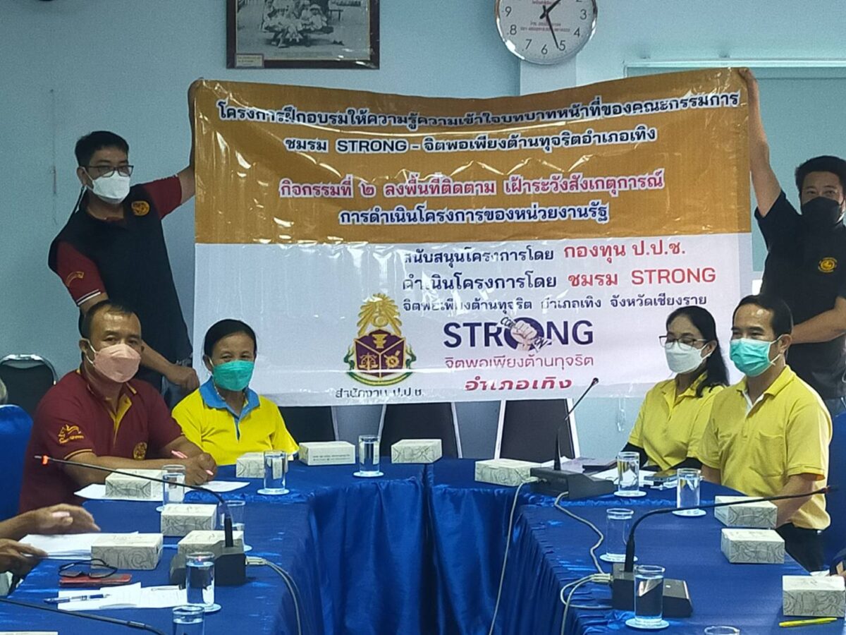 เวลา 13.00 น. วันที่ 4 ก.ค. 65 นายเนติพล ชุมยวง ผอ.สำนักงาน ป.ป.ช. ประจำจังหวัดเชียงราย มอบหมายให้นายดำรงกิตติ์ สุวรรณโณ เจ้าพนักงานป้องกันการทุจริตฏิบัติการ เป็นตัวแทนในการการลงพื้นที่ติดตามผลการดำเนินงานในการป้องกันการรุกล้ำที่ดินสาธารณะประโยชน์ “โป่งขี้แรด” โดยมีนายสิทธิศักดิ์ ธรรมชื่น นายก อบต.ปล้อง พร้อมด้วย ส.ต.อ.จำลอง นามนาย ปลัด อบต.ปล้อง ร่วมให้ข้อมูลความคืบหน้า โดยมีสมาชิกชมรม STRONG จิตพอเพียงต้านทุจริต อ.เทิง นำโดยนายเสริม ขรรค์ชัย รองประธานชมรมคนที่ 1 และคณะกรรมการและสมาชิกชมรมร่วมติดตามผลความคืบหน้าประมาณ 30 คน ณ ห้องประชุมองค์การบริหารส่วนตำบลปล้อง อ.เทิง จ.เชียงราย