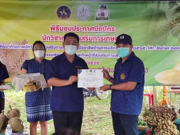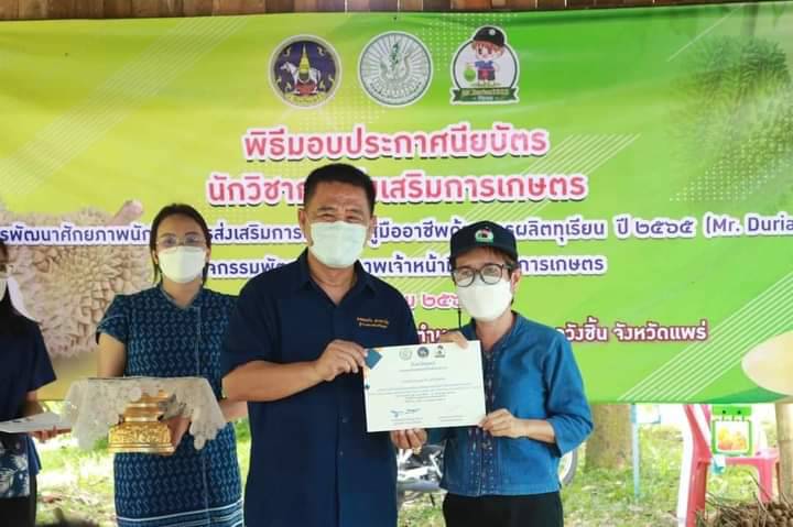 เมื่อวันที่ 5 กรกฎาคม 2565 เวลา 10.00 น. นายสมหวัง พ่วงบางโพ ผู้ว่าราชการจังหวัดแพร่ ให้เกียรติเป็นประธานในพิธีมอบประกาศนียบัตร แก่นักวิชาการส่งเสริมการเกษตรที่ผ่านการเข้าร่วมโครงการฯ พร้อมกับให้โอวาทและประชาสัมพันธ์ทุเรียนจังหวัดแพร่ สร้างการรับรู้ให้ผู้บริโภคและผู้ที่สนใจได้บริโภคทุเรียนของดีจังหวัดแพร่ โดยมีนายประภาส สานอูป เกษตรจังหวัดแพร่ กล่าวรายงานถึงวัตถุประสงค์ของการจัดงาน นายปานศร ภมรคนธ์ นายอำเภอวังชิ้น ให้เกียรติกล่าวต้อนรับประธานในพิธี และแขกผู้มีเกียรติที่มาร่วมงาน ซึ่งในครั้งนี้มีหัวหน้าส่วนราชการระดับจังหวัด ระดับอำเภอ ผู้นำองค์กรปกครองส่วนท้องที่ ท้องถิ่น พี่น้องเกษตรกร และแขกผู้มีเกียรติ ร่วมเป็นเกียรติและเป็นขวัญกำลังใจในการปฏิบัติงานแก่นักวิชาการส่งเสริมการเกษตร ในการับมอบประกาศนียบัตร จำนวน 22 ราย