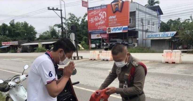 สภ.บุญเรือง จ.เชียงราย ช่วย ประชาชนรถจักรยานยนต์น้ำมันหมดอยู่บริเวณข้างทาง