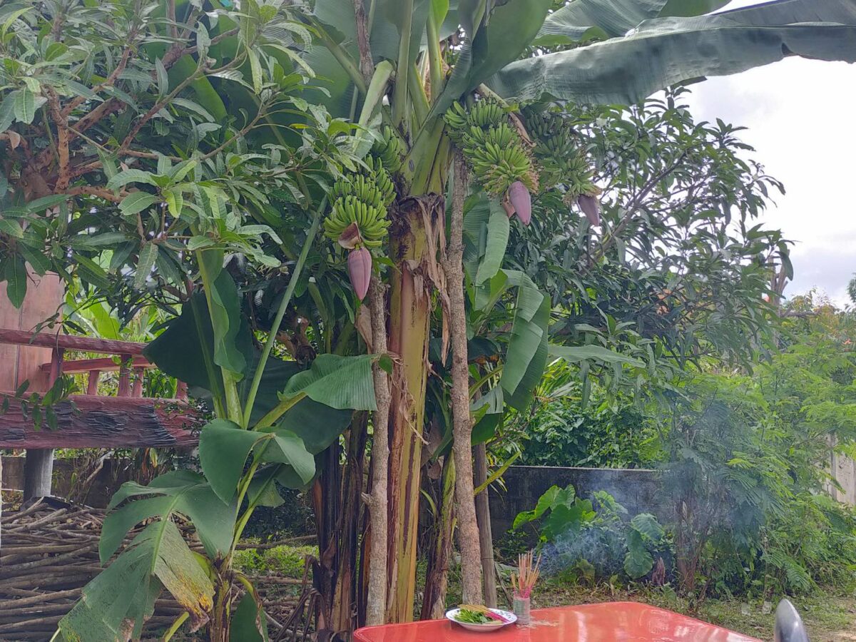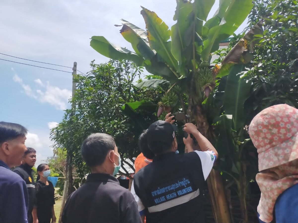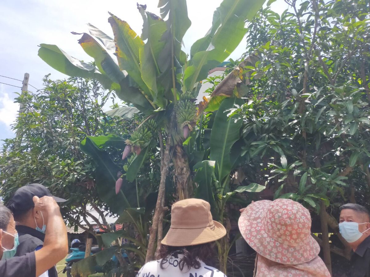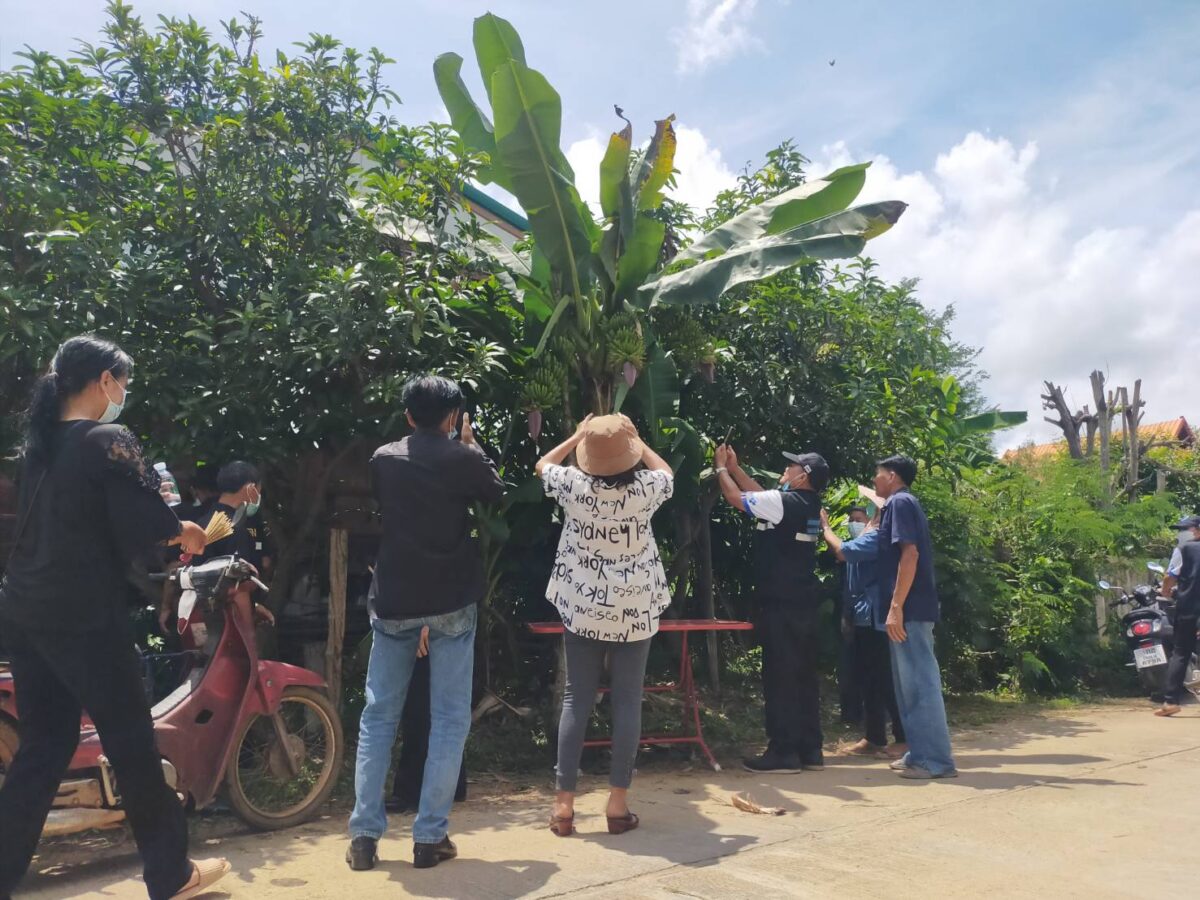 ผู้สื่อข่าวลงพื้นที่บ้านเลขที่ 44 ม.3 ซอย 10 ซึ่งเป็นบ้านของนายบุญมี เสนใจ ก็พบว่าได้มีชาวบ้านที่กลับจากทำพิธีฌาปณกิจศพในหมู่บ้านได้พากันแวะเวียนมาที่บ้านดังกล่าว เพื่อมาดูต้นกล้วยออกลูก 3 เครือในต้นเดียว และบางคนก็พากันวิเคราะห์ว่าเลขอายุคนที่เพิ่งจัดพิธีเผาศพ ตรงกับเลขที่บ้านที่มีต้นกล้วยพอดี โดยนางสุขคำ กันทะวงค์ อายุ 53 ปี ซึ่งอาศัยอยู่ที่บ้านดังกล่าว เล่าว่า เพิ่งมาเห็นว่าต้นกล้วยออกลูกเมื่อไม่กี่วันที่ผ่านมา เห็นทีแรกก็รู้สึกแปลกใจเพราะมีถึง 3 เครือในต้นเดียว แต่ก็ยังไม่ได้บอกใคร แต่ก็มีบางคนมาเห็นก็ถ่ายรูปไปแชร์ จนวันนี้มีคนที่รู้ข่าวได้มาทักว่าควรนำธูปเทียนมากราบไหว้ขอโชค เผื่อได้เลขเด็ด ที่ผ่านมาเคยเห็นต้นกล้วยที่ออกลูก 2 เครือ แต่ 3 เครือแบบนี้ยังไม่เคยเห็น