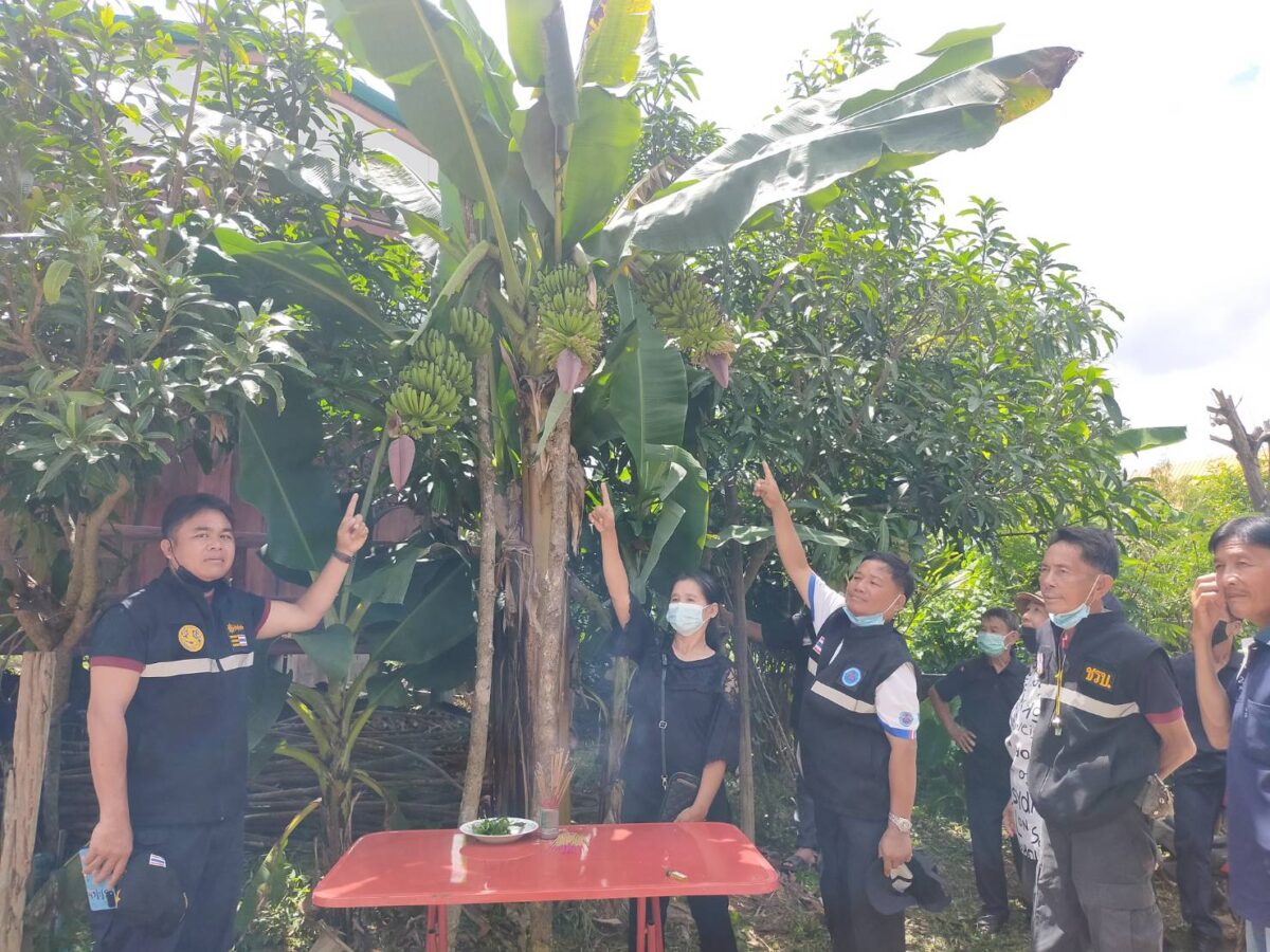วันที่ 8 ก.ค. 65 ที่บ้านแม่เปา ม.3 ต.แม่เปา อ.พญาเม็งราย จ.เชียงราย มีต้นกล้วยออกลูกแปลกประหลาด กอเดียวแต่แตกปลายเป็น 2 ต้น และออกลูกพร้อมกันทีเดียว 3 เครือ ชาวบ้านที่พบเห็นต่างรู้สึกประหลาดใจ ต้องพากันหยุดถ่ายรูป รวมถึงจุดธูปไหว้ขอโชคกับสิ่งศักดิ์สิทธิ์ ซึ่งคอหวยก็ไม่พลาดพากันแวะส่องเลขและวิเคราะห์กันไปต่างๆนานา