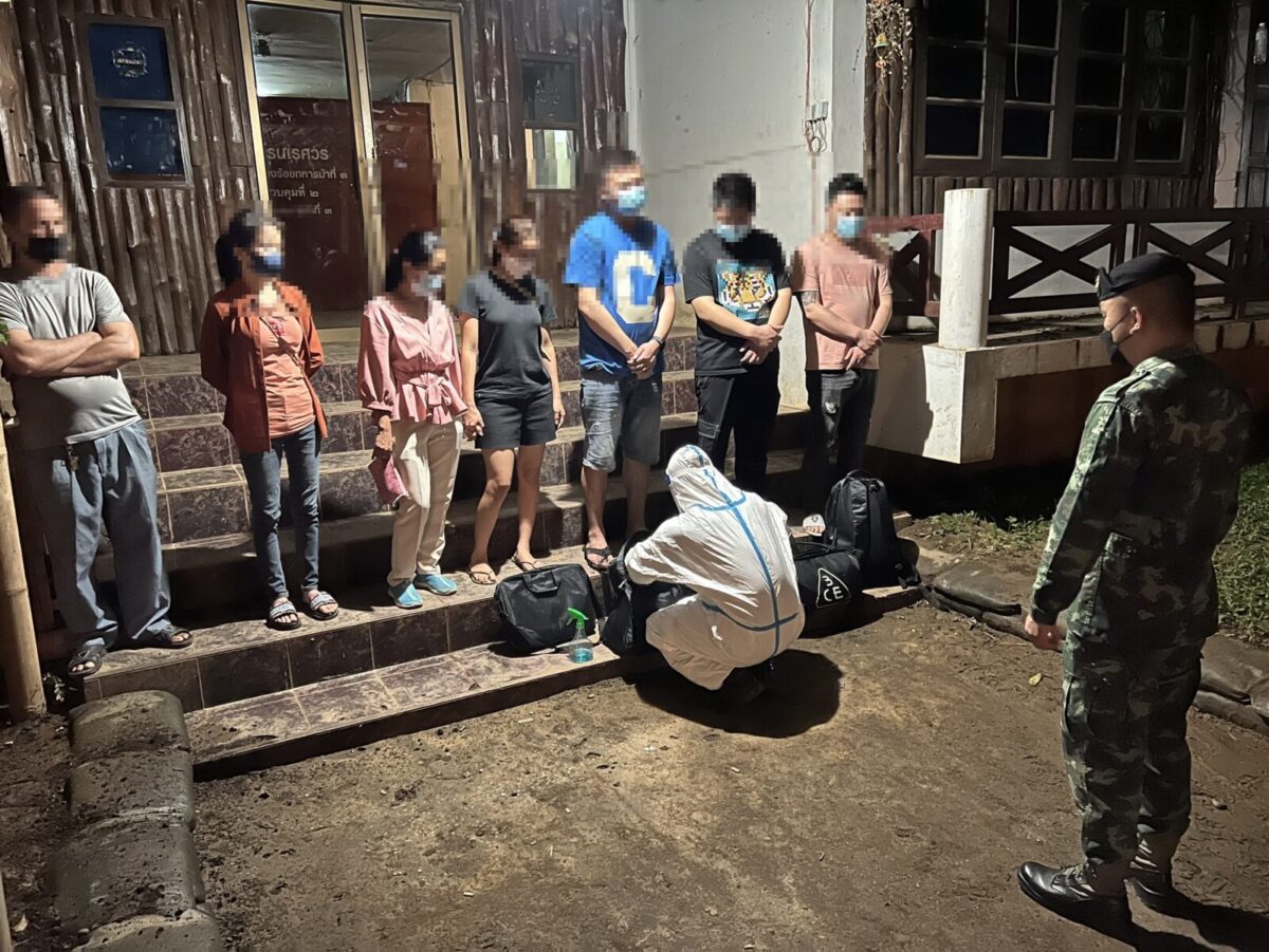วันที่ 12 ก.ค. 65 เวลา 23.00 น. มว.ม.2 ร้อย.ม.3 บก.ควบคุมที่ 2 ฉก.ม.3 จัด กพ. 1 ชป. ปฏิบัติภารกิจลาดตระเวนเฝ้าตรวจในพื้นที่รับผิดชอบบริเณท่าข้าม สะพานมิตรภาพ ไทย-เมียนมาแห่งที่ 1 ต.เเม่สาย อ.แม่สาย จ.เชียงราย พิกัด ระหว่างลาดตระเวนได้ตรวจพบ กลุ่มคนต้องสงสัยเดินลักลอบข้ามลำน้ำสายมาจากแนวเมืองท่าขี้เหล็ก เมียนมา จึงได้เฝ้าสังเกตุ พบมีรถยนต์ได้มาจอดรับกลุ่มบุคคลดังกล่าว บริเวณท่าข้ามจุดที่กลุ่มบุคคลดังกล่าว จึงได้ทำการตั้งจุดสกัดรถยนต์คันดังกล่าว เมื่อรถยนต์คันดังกล่าว มาถึงจุดสกัด ทางเจ้าหน้าที่ได้ขอแสดงตัว และขอทำการตรวจค้นภายใต้มาตรการป้องกันโควิด-19 พร้อมให้กลุ่มบุคคลดังกล่าวแสดงหลักฐาน พบบุคคลสัญชาติจีน จำนวน 3 คน มี Lei zu ping อายุ 32 ปี Lei zu di อายุ 37 ปี Lei di zhuo อายุ 29 ปี ซึ่งสอบถามเบื้องต้นพบว่าชาวจีนทั้ง 3 อาศัยอยู่ เมืองฟูเจียน ประเทศจีน และยังตรวจพบบุคคลสัญชาติไทยเป็นหญิงจำนวน 2 คน น.ส.พรทิวา อายุ 27 ปี น.ส.ภัทรภร อายุ 33 ปี ซึ่งมีภูมิลำเนาอยู่ที่ ต.เวียงพางคำ และ ต.แม่สาย อ.แม่สาย จ.เชียงราย มีบุคคลสัญชาติเมียนมาเป็นหญิง จำนวน 1 คนคือ นางศรีคำ อายุ 36 ปี เดินทางมาจากเมืองเชียงตุง ประเทศเมียนมา