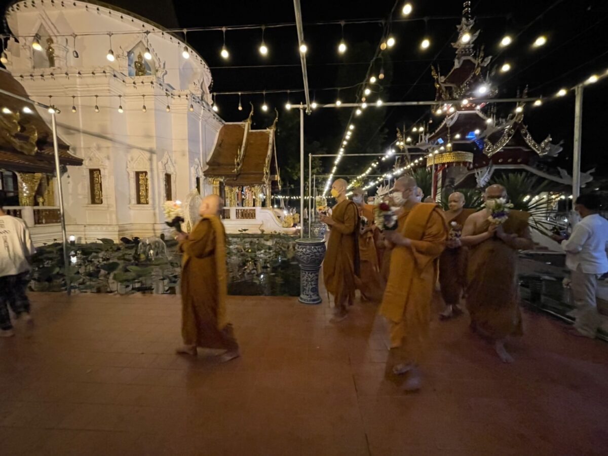 เย็นวันนี้ (13 ก.ค. 65) นายประจญ ปรัชญ์สกุล ผู้ว่าราชการจังหวัดเชียงใหม่ มอบหมายให้ นายศักดิ์ชัย คุณานุวัฒน์ชัยเดช รองผู้ว่าราชการจังหวัดเชียงใหม่ นำพุทธศาสนิกชน ฟังพระธรรมเทศนา และประกอบพิธีเวียนเทียน ถวายเป็นพุทธบูชา เนื่องในวันอาสาฬหบูชา ณ วัดป่าดาราภิรมย์ พระอารามหลวง อำเภอแม่ริม จังหวัดเชียงใหม่ โดยมีพุทธศาสนิกชนแต่งกายด้วยชุดสีขาวปฏิบัติธรรม เข้าร่วมพิธีเป็นจำนวนมาก เพื่อความเป็นสิริมงคลแก่ตนเองและครอบครัว ภายใต้มาตรการป้องกันโรคโควิด-19
