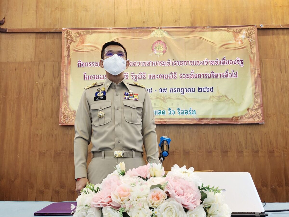 เมื่อวันที่ 18 กรกฎาคม 2565 ที่โรงแรม น่านกรีนเลค วิว รีสอร์ท ตำบลไชยสถาน อำเภอเมืองน่าน จังหวัดน่าน นายวิบูรณ์ แววบัณฑิต ผู้ว่าราชการจังหวัดน่าน เป็นประธาน เปิดการอมรม การเสริมสร้างให้ความรู้ ในกิจกรรม การพัฒนาขีดความสามารถ ของข้าราชการและเจ้าหน้าที่ของรัฐ ในงานพระราชพิธี รัฐพิธี และงานพิธี รวมทั้งการบริหารงานโดยทั่วไป ซึ่งศาสนพิธีเป็นสิ่งจำเป็นที่จะต้องมีการสืบทอดให้ผู้ปฏิบัติหน้าที่ ได้มีความรู้ความเข้าใจที่ถูกต้องตามหลักของพิธีและประเพณีนิยม เพื่อสร้างมาตรฐานการปฏิบัติ งานศาสนพิธีให้ถูกต้อง และเป็นไปในแนวทางเดียวกัน