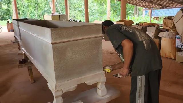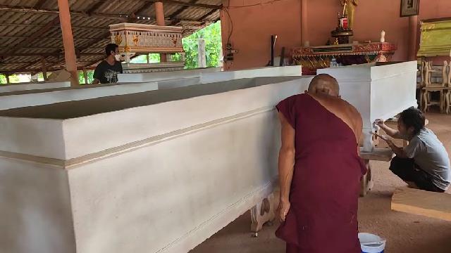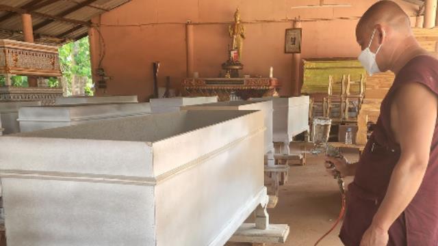กิจของสงฆ์วันเข้าพรรษา ต่อโลงศพแจกฟรีให้กับญาติโยมที่ยากไร้ ยากจน ผลงานพระสงฆ์ต่อโลงไม่ธรรมดา สวยงามไม่แพ้ช่างต่อโลงมืออาชีพ