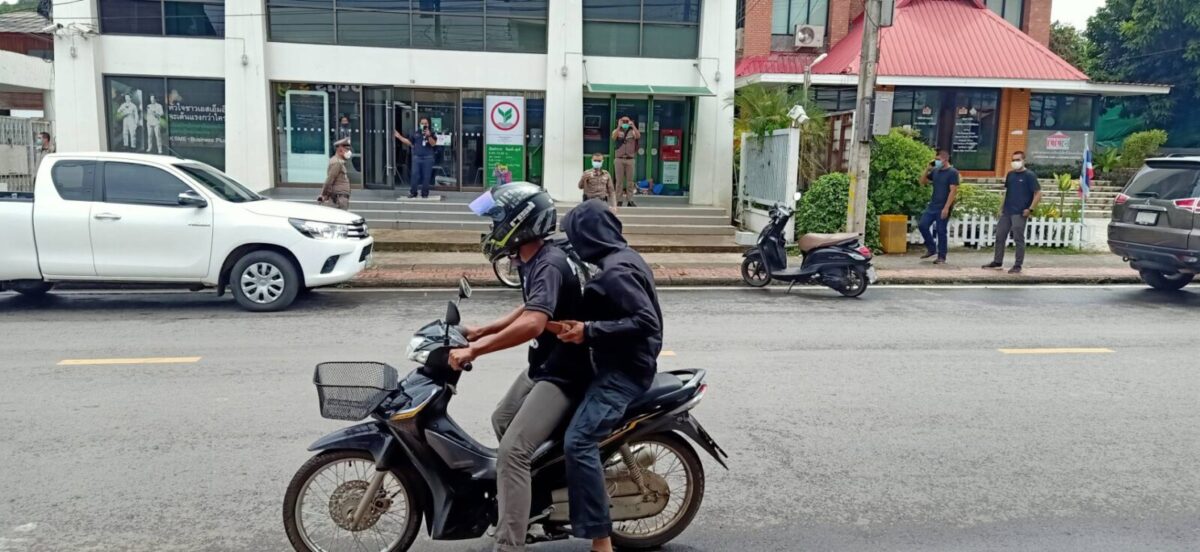 ซึ่งจากการตรวจสอบกล้องวงจรปิดของธนาคาร พบว่าคนร้ายเป็นชายวัยรุ่นมีด้วยกัน 2 คน คนขับสวมกางเกงขายาวสี้เทา เสื้อยืดสีดำแขวนสั้น ใส่หมวกกันน็อคปิดบังใบหน้า ส่วนคนซ้อนสวมกางเกงขายาวสีกรมท่า สวมเสื้อแขวนยาวสีดำแบบมีหมวกคลุมหัวปิดบังใบหน้า หลังก่อเหตุขับขี่รถจักรยานยนต์ฮอนดร้าเวฟสีดำหลบหนีไปตามถนนขุนลุมประพาส จากนั้นจึงวิทยุแจ้งลักษณะรูปพรรณและยานพาหนะและเส้นทางหลบหนีให้เจ้าหน้าที่ทราบและสามารถจับกุมคนร้ายทั้งสองได้ในเวลาต่อมา