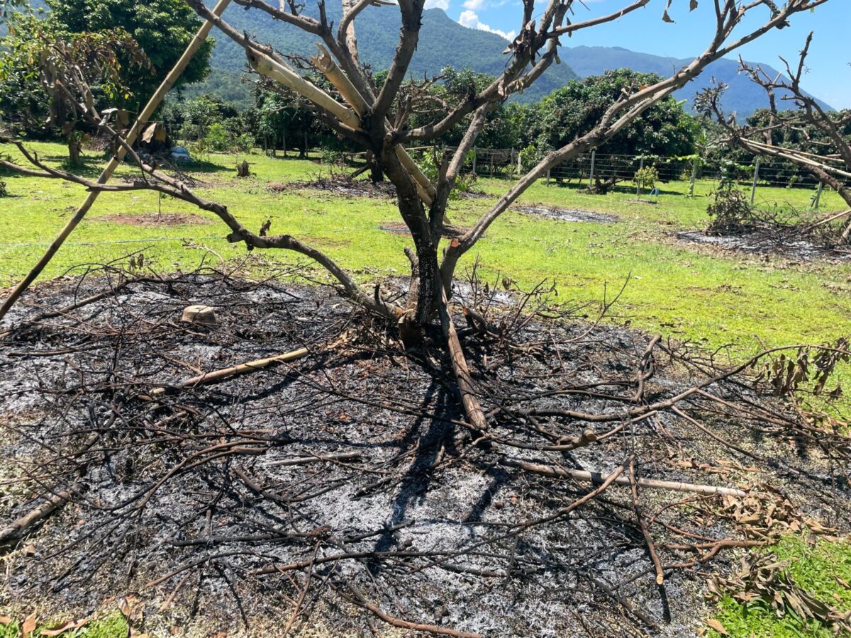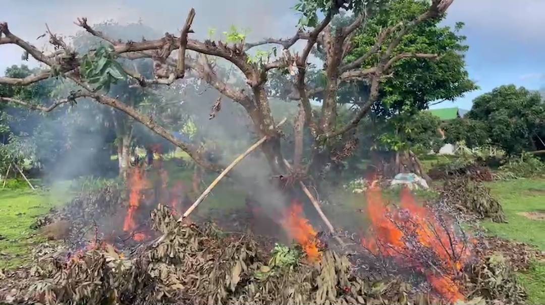ตนจึงทำการเผาต้นลำไยพันธ์ุอิดอไปแล้วกว่า 30 ต้น จาก 200 กว่าต้นเป็นการแสดงออก ทางสัญลักษณ์ เพื่อประชดมาตรการการช่วยเหลือที่ล่าช้าจากรัฐบาล