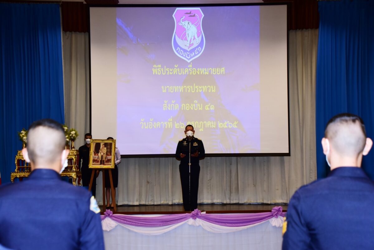 เมื่อวันอังคารที่ 26 กรกฎาคม 2565 นาวาอากาศเอก วงศ์วิวัติ วัฒนวรางกูร ผู้บังคับการกองบิน 41 เป็นประธานในพิธีประดับเครื่องหมายยศนายทหารชั้นประทวน ที่ได้รับการแต่งตั้งและเลื่อนยศที่สูงขึ้นโดยมีหัวหน้าหน่วยขึ้นตรงกองบิน 41 ร่วมเป็นเกียรติในพิธี ณ หอประชุมเดชะตุงคะ กองบิน 41