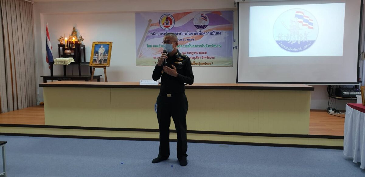 เมื่อวันที่ 27 กรกฎาคม 2565 ที่ ห้องประชุมวิทยาลัยสงฆ์นครน่าน ต.ม่วงตึ๊ด อ.ภูเพียง จังหวัดน่าน พันเอกนิรันดร์ชัย ทิพย์กาญจนกุล รองผู้อำนวยการรักษาความมั่นคงภายในจังหวัดน่าน เป็นประธานในพิธีปิดการอบรมหลักสูตรไทยอาสาป้องกันชาติเพื่อความมั่นคง ตามที่ ผู้อำนวยการรักษาความมั่นคงภายในราชอาณาจักร ได้กรุณาอนุมัติให้ กองอำนวยการรักษาความมั่นคงภายในจังหวัด ทั้ง 77จังหวัด ทั้วประเทศ ดำเนินการจัดการฝึกอบรมหลักสูตรไทยอาสาป้องกันชาติเพื่อเสริมสร้างเครื่อข่ายการมีส่วนร่วมเพื่อความมั่นคง จังหวัดละ 1 รุ่น กองอำนวยการรักษาความมั่นคงภายในจังหวัดน่าน