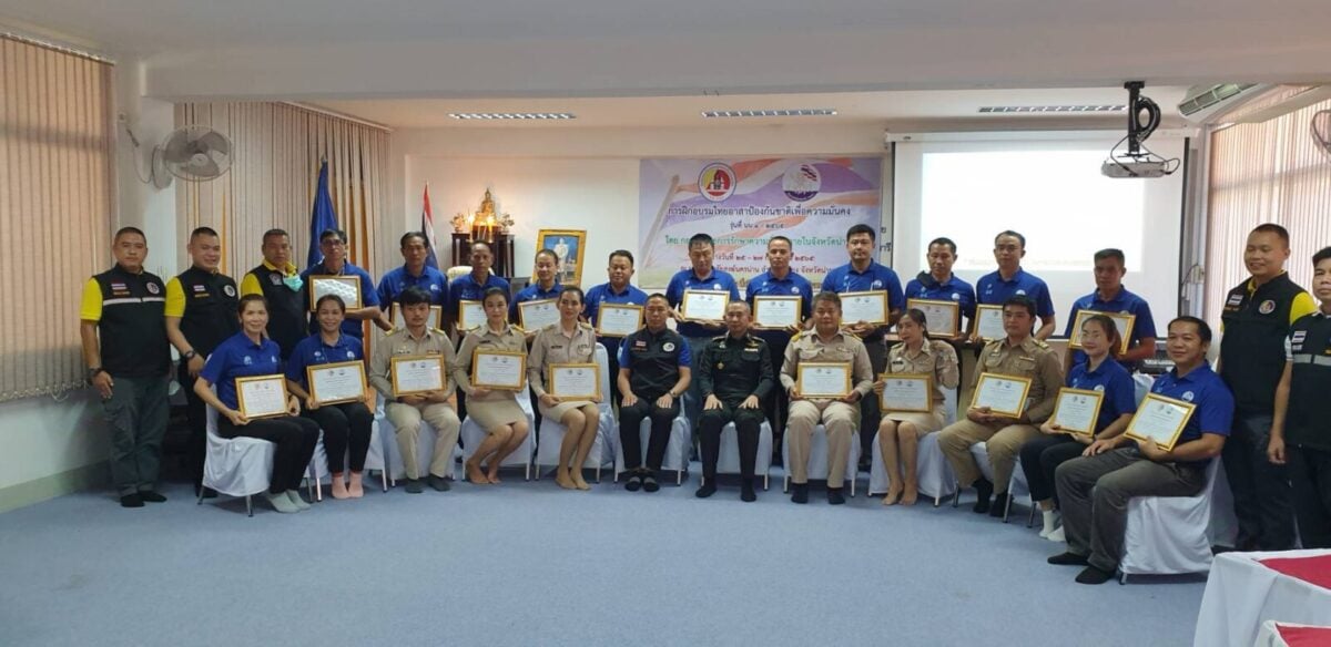 กองอำนวยการรักษาความมั่นคงภายในจังหวัดน่าน ปิดการอบรมหลักสูตรไทยอาสาป้องกันชาติเพื่อความมั่นคงและมอบเข็มไทยอาสาป้องกันชาติพร้อมใบประกาศ