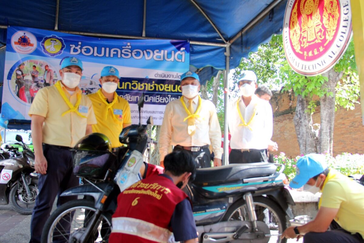 1) วิทยาลัยเทคนิคเชียงใหม่ ซ่อมบำรุงรักษารถจักรยานยนต์และเปลี่ยนถ่ายน้ำมันเครื่องฟรี จำนวน 100 คันขึ้นไปต่อวัน