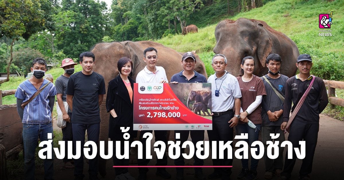 นายประพาฬพงษ์ มากนวล รองผู้อำนวยการฝ่ายกิจกรรมองค์กรเพื่อสังคม กลุ่มทรู และนายฤทธิชัย ภูมิอมร รองกรรมการผู้จัดการอาวุโส บมจ.เจริญโภคภัณฑ์อาหาร ธุรกิจผลิตและขายอาหารสัตว์บกภาคเหนือเป็นตัวแทนมอบเงินบริจาคที่ได้จากประชาชนและลูกค้า จำนวน 2,798,000 บาท ให้สมาคมสหพันธ์ช้างไทย นำไปช่วยเหลือควาญและช้างผ่าน โครงการ ‘คนไทยรักช้าง’ เพื่อช่วยเหลือและบรรเทาความเดือดร้อนด้านอาหารและสุขภาพของช้างเลี้ยง จำนวน 223 ปางทั่วประเทศ ด้วยการรณรงค์ให้คนไทยจากทุกภาคส่วนร่วมกันแบ่งปันน้ำใจให้ก้าวผ่านวิกฤตโควิด-19 โดยที่ผ่านมาซีพีเอฟ สนับสนุนอาหารช้างเอราวัณไปแล้วกว่า 60,000 กิโลกรัม เป็นมูลค่า 600,000 บาท มอบให้แก่สมาคมสหพันธ์ช้างไทย เพื่อนำไปเป็นอาหารเสริมให้ช้างมีสุขภาพที่ดีขึ้น นอกจากนี้กลุ่มทรูยังติดตั้งเทคโนโลยีอัจฉริยะทรู 5G ในระบบสื่อสารของรถกู้ภัยช้างประกอบไปด้วยเพื่อการอุปกรณ์สื่อสารแบบไร้สายที่เร็ว และระบบกล้องวงจรปิด เพื่อใช้ในภารกิจช่วยเหลือช้างบาดเจ็บและป่วย และสามารถเฝ้าดูอาการของช้างระหว่างที่ทำการขนย้าย ทำให้สัตว์แพทย์สามารถวินิจฉัยอาการได้ทันที พร้อมเปิดช่องทางรับบริจาคจากประชาชนผ่านทรูมันนี่ เคาน์เตอร์เซอร์วิส และ ทรูยู โดยในปีที่ผ่านมา ได้รับเงินบริจาค เป็นเงินทั้งสิ้น 2,798,000 บาท เพื่อนำไปดูแลช้างที่ได้รับผลกระทบจากวิกฤติในครั้งนี้ และให้ความช่วยเหลือต่อเนื่องในปี 2565 อีกด้วย
