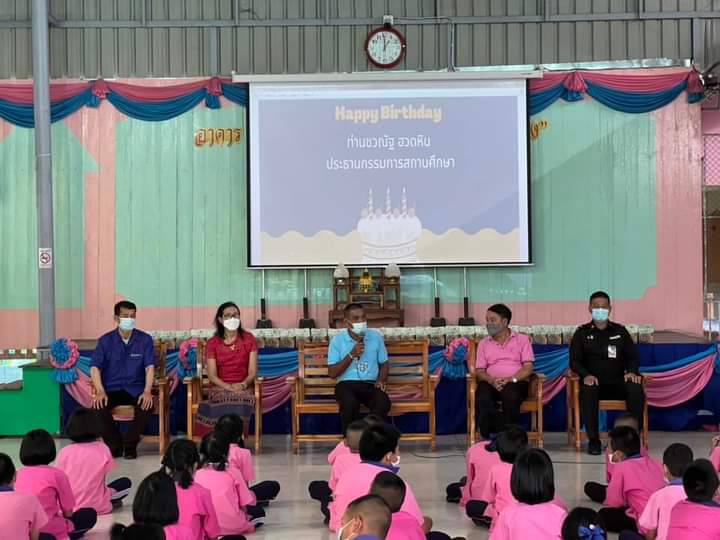 อาจารย์ชวณัฐ ฮวดหิน ประธานคณะกรรมการสถานษึกษาขั้นพื้นฐานรร.รัญราษฏร์บำรัง สพแ.แพร่ เขค 1พร้อมด้วย อาจารย์พรพิมล ฮวดหิน และ ร.ท. อโนทัย แก้วมูลศิริ ฝ่ายการเงิน.ม.พัน.12 พล.ม.1 ครูปฏิพัทธ์ ถิ่นถา พร้อมนักศึกษาจิตอาสา ร่วมกิจกรรม “อายุวัฒนมงคล 63 ปี ชวณัฐ”