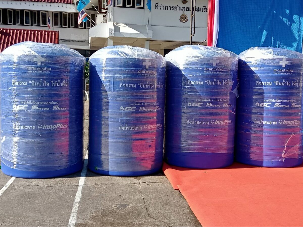 ซึ่งได้รับการสนับสนุนถังน้ำพร้อมงบประมาณก่อสร้างฐานคอนกรีตเสริมเหล็ก จากบริษัท พีทีที โกลบอล เคมิคอล จำกัด (มหาชน )และสภากาชาดไทย เพื่อมอบให้แก่โรงเรียนที่ขาดเเคลนน้ำสะอาดสำหรับกักเก็บน้ำสะอาดไว้อุปโภค บริโภคในเขตพื้นที่อำเภอแม่สะเรียง จำนวน 7 ถัง ดังนี้ 1.โรงเรียนสังวาลย์วิทยา , 2.โรงเรียนบ้านแม่เกาะ , 3.โรงเรียนบ้านสบหาร , 4.โรงเรียนบ้านแม่ปุ๋น , 5.โรงเรียนบ้านแม่ละ , 6.โรงเรียนแม่สวรรค์น้อย , 7.โรงเรียนแม่สวรรค์หลวง และเขตพื้นที่อำเภอสบเมย อีก จำนวน 2 ถังคือ 1. โรงเรียนบ้านแม่เเพ และ 2.บ้านท่าฝาย หมู่ที่ 7 ตำบลกองก๋อย อำเภอสบเมย จังหวัดแม่ฮ่องสอน โดยมีผู้อำนวยการเเต่ละโรงเรียนเข้ารับมอบถังน้ำในครั้งนี้