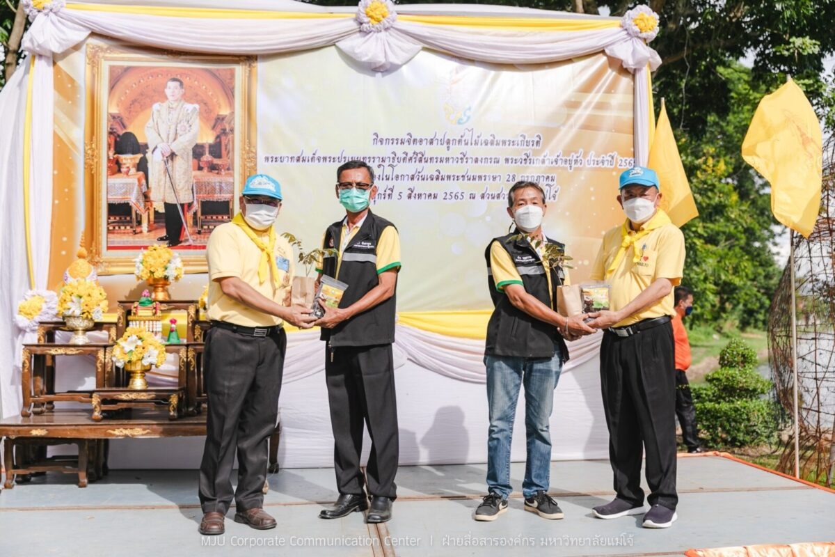 วันศุกร์ที่ 5 สิงหาคม 2565 เวลา 16.00 น. มหาวิทยาลัยแม่โจ้ร่วมกับเทศบาลเมืองแม่โจ้จัดกิจกรรมจิตอาสาเฉลิมพระเกียรติพระบาทสมเด็จพระปรเมนทรรามาธิบดีศรีสินทร มหาวชิราลงกรณ พระวชิรเกล้าเจ้าอยู่หัว ประจำปี 2565 โดยได้รับเกียรติจาก รองศาสตราจารย์ ดร.วีระพล ทองมา อธิการบดี มหาวิทยาลัยแม่โจ้ เป็นประธานในพิธี ซึ่งจัดให้มีการปลูกต้นไม้เฉลิมพระเกียรติเนื่องในโอกาสวันเฉลิมพระชนมพรรษา 28 กรกฎาคม 2565 จำนวน 99 ต้น ได้แก่ ต้นอินทนิล ต้นประดู่ ต้นมะค่าโมง ต้นหว้า ต้นพยุง ต้นจามจุรี ต้นรวงผึ้ง โอกาสนี้ นายศิวะ ธมิกานนท์ นายอำเภอสันทราย นายวิทยา ทรงคำ สมาชิกสภาผู้แทนราษฎร จังหวัดเชียงใหม่ ให้เกียรติเข้าร่วมพิธี และมีนักศึกษา ประชาชน เข้าร่วมกิจกรรม ณ สวนสวรรค์เมืองแม่โจ้ อ.สันทราย จังหวัดเชียงใหม่