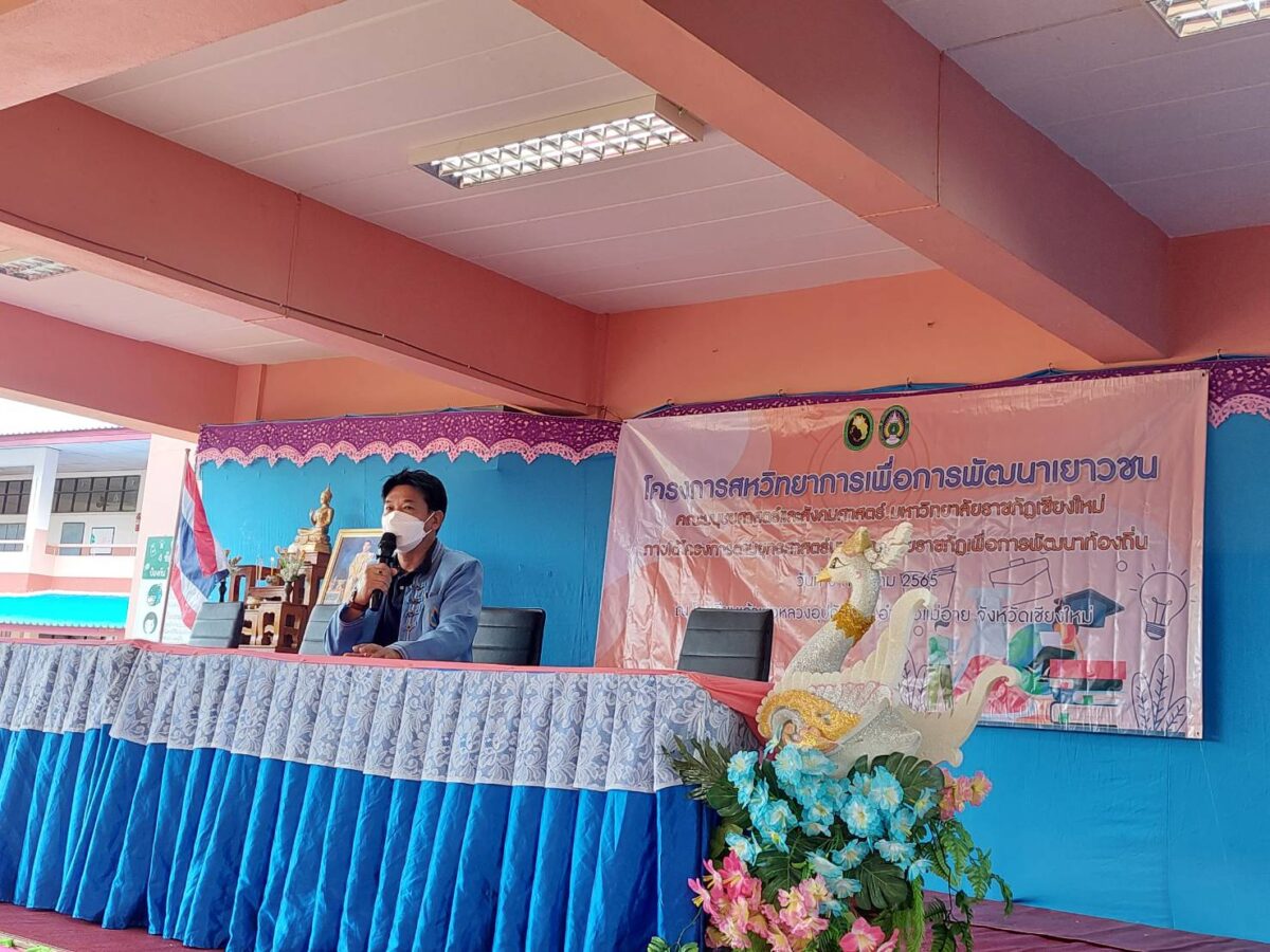 รศ.ดร.สัญญา สะสอง คณบดีคณะมนุษยศาสตร์และสังคมศาสตร์ อ.ดร.เสกสรร ท้าวทุมมา รองคณบดี อ.ดร.รณวีร์ พาผล ผู้ช่วยคณบดี พร้อมด้วย คณาจารย์ สโมสรนักศึกษา และนักศึกษา จากหลักสูตรนิติศาสตร์ หลักสูตรภาษาอังกฤษ หลักสูตรภาษาไทย หลักสูตรบรรณารักษศาสตร์และสารสนเทศศาสตร์ หลักสูตรศิลปะและการออกแบบ มหาวิทยาลัยราชภัฏเชียงใหม่ ร่วมกับ นายอนุชา นพรัมภา ผู้อำนวยการโรงเรียน คณะผู้บริหาร คณาจารย์ นักเรียน และผู้ปกครอง โรงเรียนเจ้าพ่อหลวงอุปถัมภ์ 9 ดำเนินโครงการสหวิทยาการเพื่อการพัฒนาเยาวชน ภายใต้โครงการตามยุทธศาสตร์มหาวิทยาลัยราชภัฏเพื่อการพัฒนาท้องถิ่น โดยบูรณาการทักษะวิชาการด้านมนุษยศาสตร์และสังคมศาสตร์ ประกอบด้วย กิจกรรมพัฒนาทักษะเรียนรู้ภาษาไทย กิจกรรมทักษะเรียนรู้ภาษาอังกฤษ กิจกรรมพัฒนาแหล่งเรียนรู้ (ห้องสมุดโรงเรียนและพื้นที่บริเวณโดยรอบ) กิจกรรมการให้ความรู้กฎหมายสำหรับประชาชน และกิจกรรมการให้ความรู้การถ่ายภาพผลิตภัณฑ์ด้วยโทรศัพท์มือถือ วันที่ 5-6 สิงหาคม 2565 ณ โรงเรียนเจ้าพ่อหลวงอุปถัมภ์ 9 อำเภอแม่อาย จังหวัดเชียงใหม่