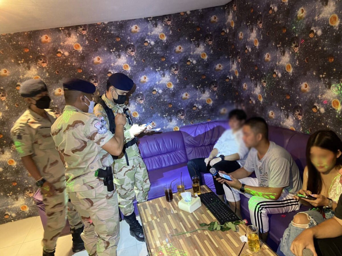 พบว่ามีลูกค้าชายหญิงเข้าไปใช้บริการห้องคาราโอเกะจำนวน 9 ห้อง และนั่งดื่มเครื่องดื่มแอลกอฮอล