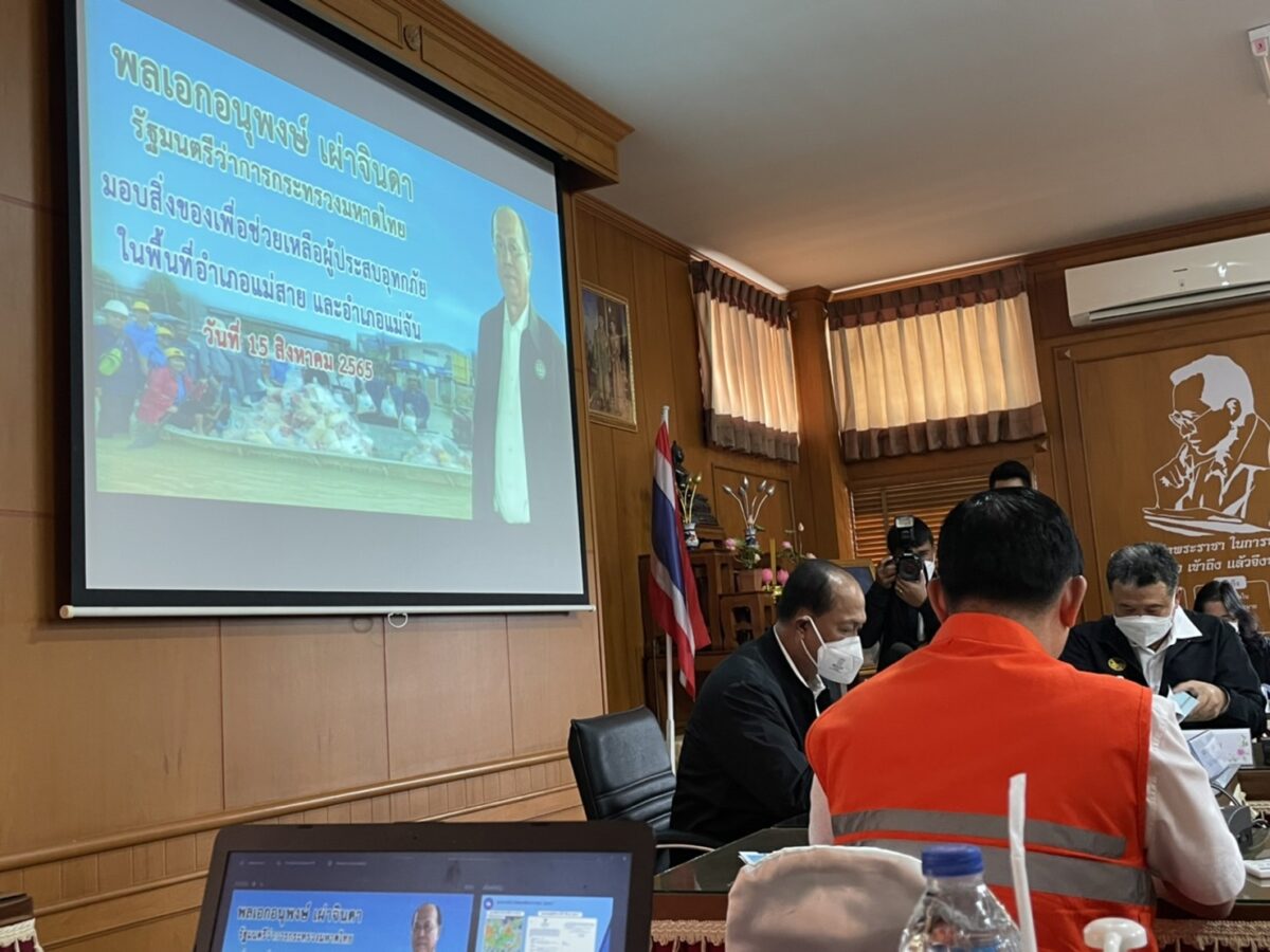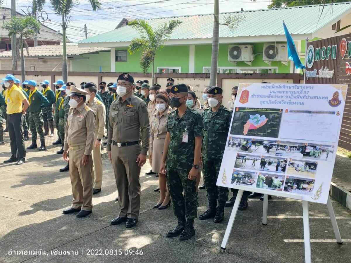 วันที่ 15 สค.65 เวลา 09.30 น. พลเอก อนุพงศ์ เผ่าจินดา รมต.มหาดไทย พร้อมคณะได้เดินทางมาตรวจพื้นที่อำเภอแม่จัน จังหวัดเชียงราย เพื่อรับทราบสถานการณ์น้ำท่วมจากพายุมู่หลาน โดยมี หน.ส่วนราชการอำเภอแม่จันให้การต้อนรับ และรับฟังคำบรรยายสรุปจาก นายภาสกร บุญญลักษณ์ ผวจ.เชียงราย ณ สำนักงานสาธารณสุขอำเภอแม่จัน จากนั้นได้ไปพบปะชาวบ้าน นำคำห่วงใยจากท่านนายกรัฐมนตรีมาแจ้งให้ชาวบ้านผู้ประสบภัยน้ำท่วมทราบ พร้อมให้กำลังใจและมอบเงินช่วยเหลือญาติผู้เสียชีวิตจากเหตุไฟฟ้าดูดขณะน้ำท่วมเหตุเกิดที่ อ.เมืองจ.เชียงราย พร้อมนี้ได้มอบถุงยังชีพ เครื่องอุปโภคบริโภค น้ำดื่มให้กับชาวบ้านที่ได้รับผลกระทบจากน้ำท่วมในอ.แม่จัน ที่หอประชุมอำเภอแม่จัน จากนั้นได้เดินทางไปที่ อ.แม่สาย จ.เชียงราย เหตุการณ์ปกติ