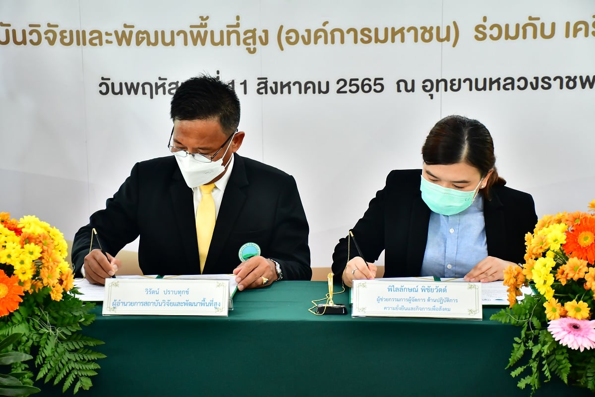 เมื่อเร็วๆ นี้ นางสาวพิไลลักษณ์ พิชัยวัตต์ ผู้ช่วยกรรมการผู้จัดการ ด้านปฏิบัติการความยั่งยืนและกิจการเพื่อสังคม หน่วยงานพัฒนาความยั่งยืนภาครัฐฯ เครือเจริญโภคภัณฑ์ พร้อมด้วย นายวิรัตน์ ปราบทุกข์ ผู้อำนวยการสถาบันวิจัยและพัฒนาพื้นที่สูง ร่วมลงนามบันทึกข้อตกลงความร่วมมือ (MOU) เพื่อพัฒนาและยกระดับคุณภาพชีวิตของประชาชนบนพื้นที่สูง ภายใต้เป้าหมายการพัฒนาที่ยั่งยืน (Sustainable Development Goals : SDGs) โมเดลเศรษฐกิจใหม่ BCG Economy และมุ่งไปสู่ความเป็นกลางทางคาร์บอน (Carbon Neutral) โดยได้รับเกียรติจาก นายชวลิต ชูขจร กรรมการผู้ทรงคุณวุฒิด้านการเกษตร และประธานอนุกรรมการวิจัยและพัฒนา สถาบันวิจัยและพัฒนาพื้นที่สูง กล่าวแสดงความยินดี พร้อมด้วย ดร.เพชรดา อยู่สุข รองผู้อำนวยการสถาบันวิจัยและพัฒนาพื้นที่สูง ด้านการพัฒนา นางอาณดา นิรันตรายกุล ผู้อำนวยการอุทยานหลวงราชพฤกษ์ นายอรรถวิทย์ ยุทธยศ ผู้จัดการทั่วไป ด้านปฏิบัติการความยั่งยืน และนายกฤตยรัฐ ปารมี ผู้จัดการมูลนิธิเจริญโภคภัณฑ์พัฒนาชีวิตชนบท ร่วมเป็นสักขีพยาน ตลอดจนผู้แทนกลุ่มธุรกิจในเครือซีพีได้เข้าร่วมด้วย ได้แก่ บริษัท เจียไต๋ จำกัด บริษัท ซีพีแรม จำกัด บริษัท สยามแม็คโคร จำกัด บริษัท เอก-ชัย ดิสทริบิวชั่น ซิสเทม จำกัด (โลตัส) และบริษัท ทรู คอร์ปอเรชั่น จำกัด มหาชน ณ อุทยานหลวงราชพฤกษ์ จ.เชียงใหม่