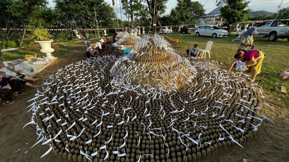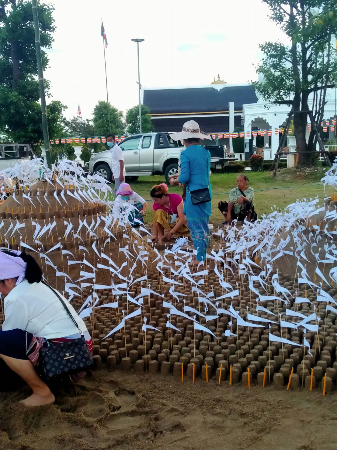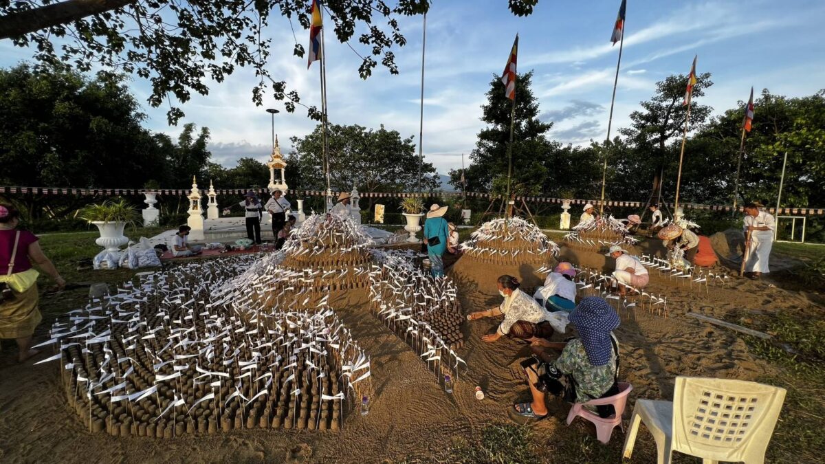 จากการสังเกตของผู้สื่อข่าวภายในบริเวณวัดพระธาตุดอยเวียงแก้ว พบว่ามีคณะศรัทธาสาธุชนที่ทราบข่าวว่าพระครูบาบุญชุ่มจะมาแวะที่วัด ต่างพากันเดินทางมาที่วัด และร่วมกันก่อกองเจดีย์ทราย 84,000 กอง พร้อมทั้งปักตุงไว้บนกองเจดีย์ทุกกอง