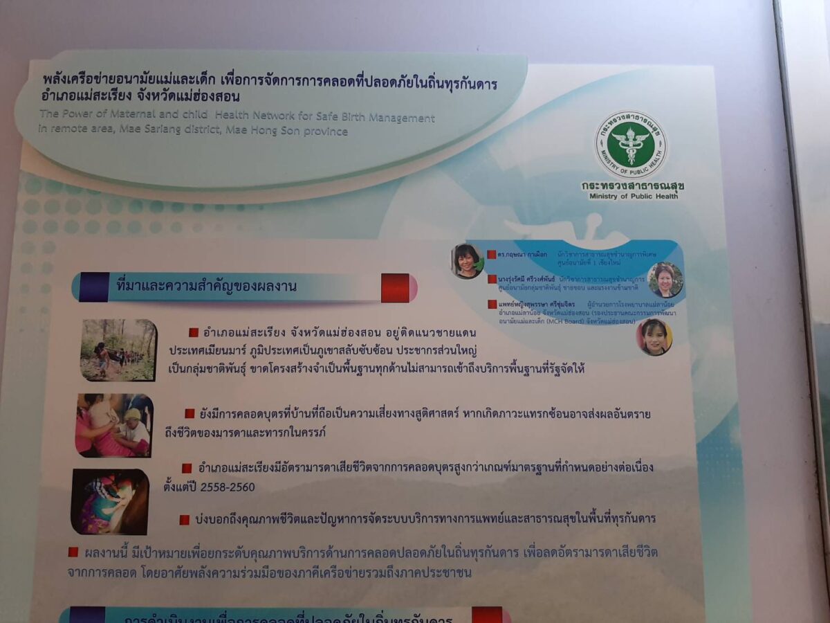 ศูนย์อนามัยที่1 เชียงใหม่ ศูนย์อนามัยกลุ่มชาติพันธุ์ ชายขอบและแรงงานข้ามขาติ กรมอนามัย ร่วมกับคณะกรรมการพัฒนาอนามัยแม่และเด็กจังหวัดแม่ฮ่องสอนนำเสนอผลงานวิชาการเรื่อง พลังเครือข่ายอนามัยแม่และเด็กเพื่อการจัดการคลอดที่ปลอดภัยในถิ่นทุรกันดาร อำเภอแม่สะเรียง จังหวัดแม่ฮ่องสอน ในการประชุม Service Plan Sharing ทศวรรษการพัฒนาระบบบริการสุขภาพ (A Decade of Service Plan : Moving Together in the next normal) วันที่ 22-23 สิงหาคม 2565 ณ โรงแรมเซนทารา บายเซนทารา ศูนย์ราชการและคอนเวนชั่นเซนเตอร์ กรุงเทพมหานคร ผลงานนี้มีเป้าหมายเพื่อยกระดับคุณภาพบริการด้านการคลอดปลอดภัยในถิ่นทุรกันดาร เพื่อการลดอัตรามารดาเสียชีวิตจากการคลอด โดยอาศัยพลังความร่วมมือของภาคีเครือข่ายรวมถึงภาคประชาชน ผลงานวิชาการได้รับรางวัลผลงานประเภทโปสเตอร์ดีเด่น Service Plan สาขาแม่และเด็ก