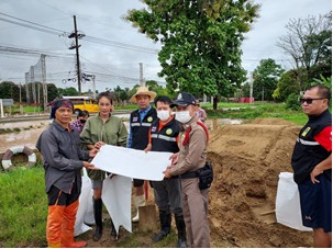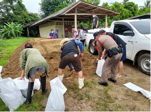 สภ.เชียงแสน จ.เชียงราย ร่วมกับประชาชนทำกระสอบทรายเพื่อทำเป็นแนวกั้นน้ำ