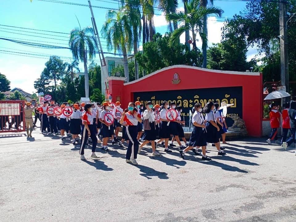 วันอังคารที่ 23 สิงหาคม 2565 นายมงคล กาเหว่า ผู้อำนวยการโรงเรียนกาวิละวิทยาลัย พร้อมด้วยนางสาวอรชพร ณ เชียงใหม่ รองผู้อำนวยการโรงเรียน คณะครูและผู้แทนนักเรียนร่วมกิจกรรมรณรงค์สถานศึกษาปลอดกัญชาหรือกัญชง ตามประกาศของกระทรวงศึกษาธิการ โดยงานสภานักเรียนได้จัดให้มีการรณรงค์ ประชาสัมพันธ์ให้ความรู้ และสร้างความตระหนักถึงโทษและอันตรายจากพิษของกัญชา บริเวณชุมชนรอบๆ โรงเรียน รวมทั้งขอความร่วมมือชุมชนไม่จำหน่ายเครื่องดื่มผสมกัญชาให้กับนักเรียน