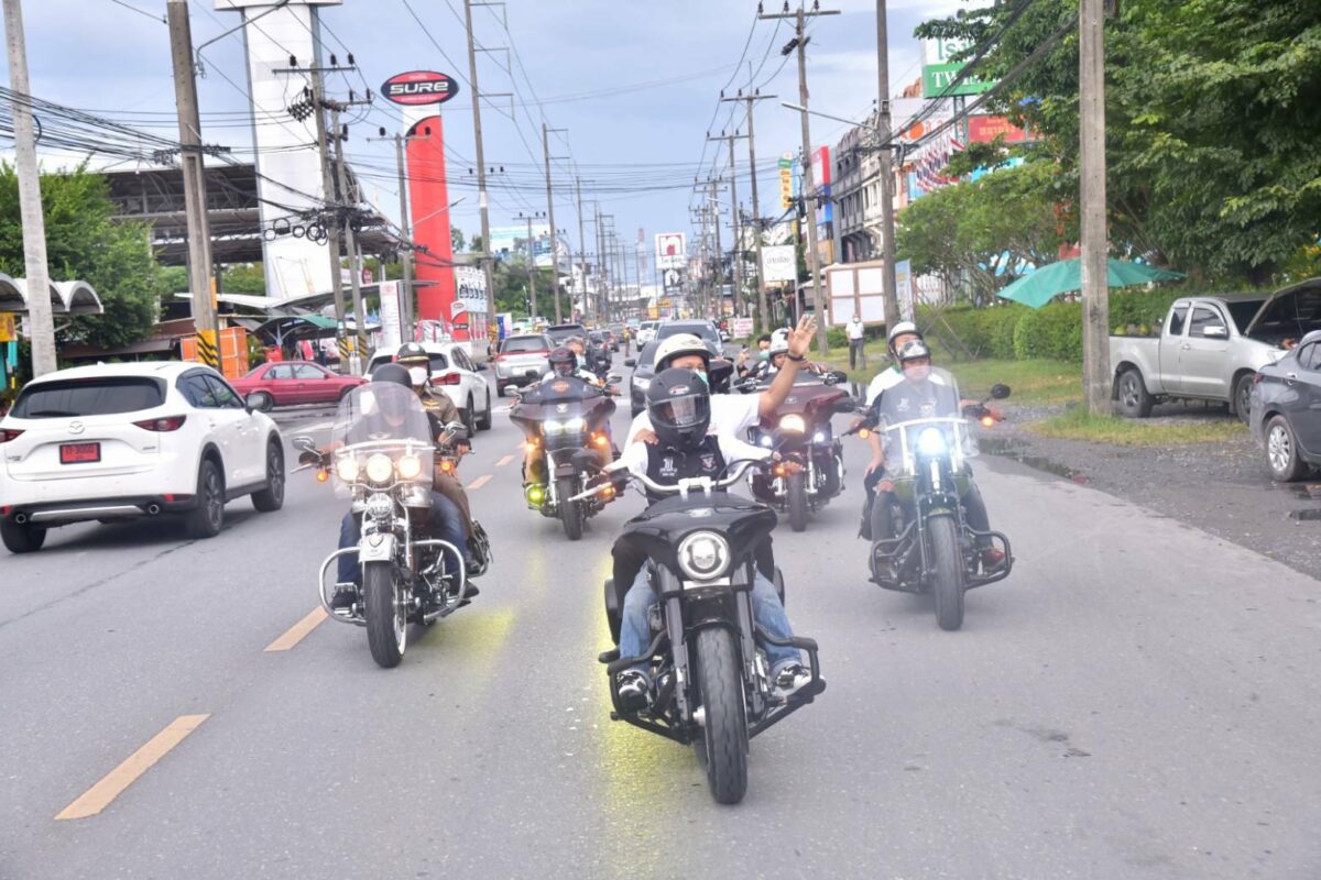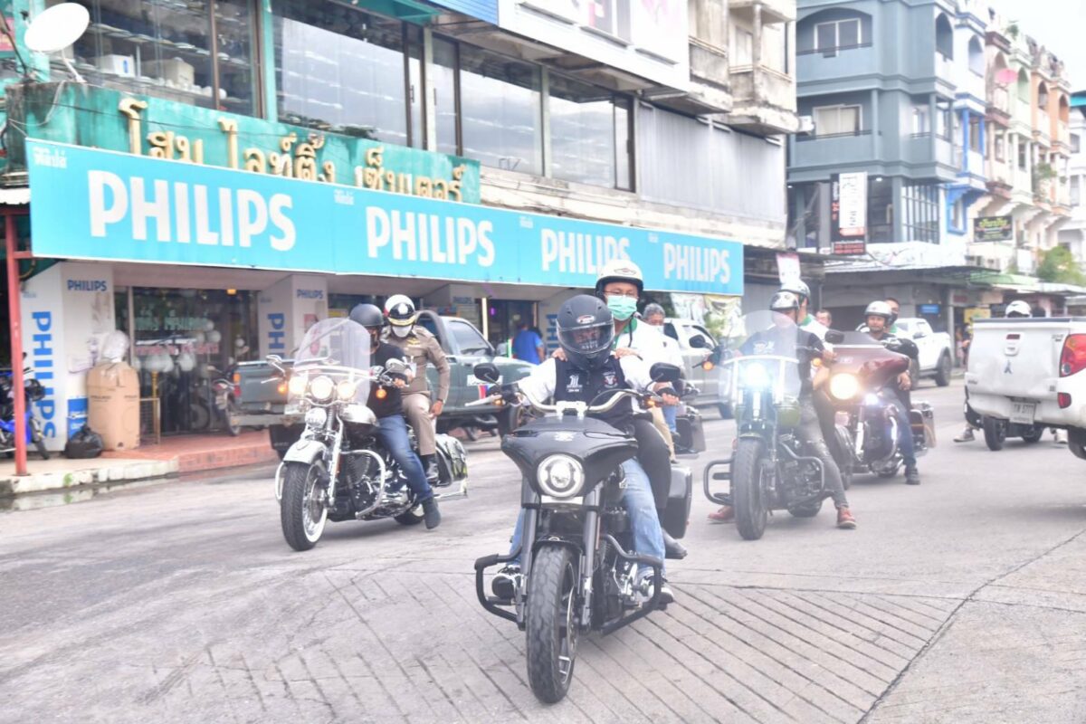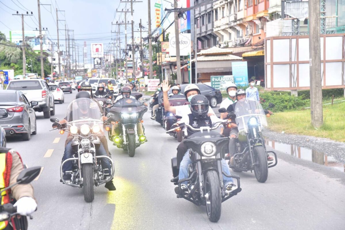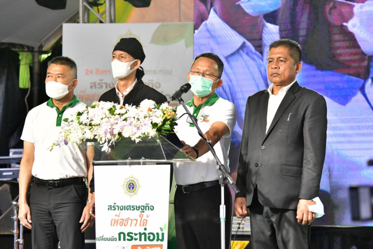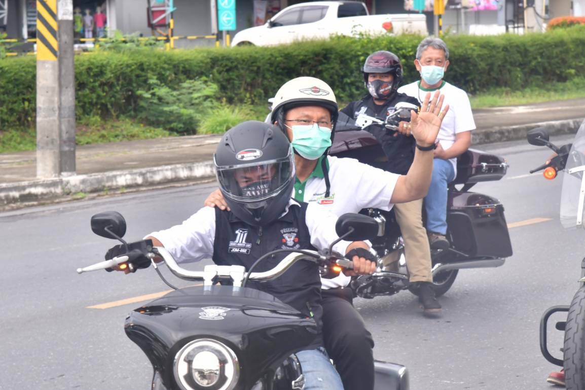 วันที่ 25 สิงหาคม 2565 เวลา 16.30 น. ที่โรงแรมทวินโลตัส อ.เมือง จ.นครศรีธรรมราช นายสมศักดิ์ เทพสุทิน รมว.ยุติธรรม พร้อมด้วย นายวิชัย ไชยมงคล เลขาธิการ ป.ป.ส. ซ้อนท้ายขบวนมอเตอร์ไซค์ Harley Davidson ไปเปิดงาน“สร้างเศรษฐกิจเพื่อชาวใต้ เปลี่ยนพืชกระท่อม เป็นเงินสด” ที่ตลาดลีวัฒนา โดยมี นายสมพงษ์ มากมณี รองผู้ว่าราชการจังหวัดนครศรีธรรมราช นายธีระยุทธ วานิชชัง ผู้ช่วย รมว.อุตสาหกรรม พล.ต.ต.สมชาย ซื่อต่อตระกูล ผบก.ภ.จว.นครศรีธรรมราช นายสัณหพจน์ สุขศรีเมือง นายสายัณห์ ยุติธรรม ส.ส.นครศรีธรรมราช พรรคพลังประชารัฐ นายยงยศ แก้วเขียว ประธานชมรมกำนัน ผู้ใหญ่บ้านแป่งประเทศไทย และประชาชนร่วมงาน