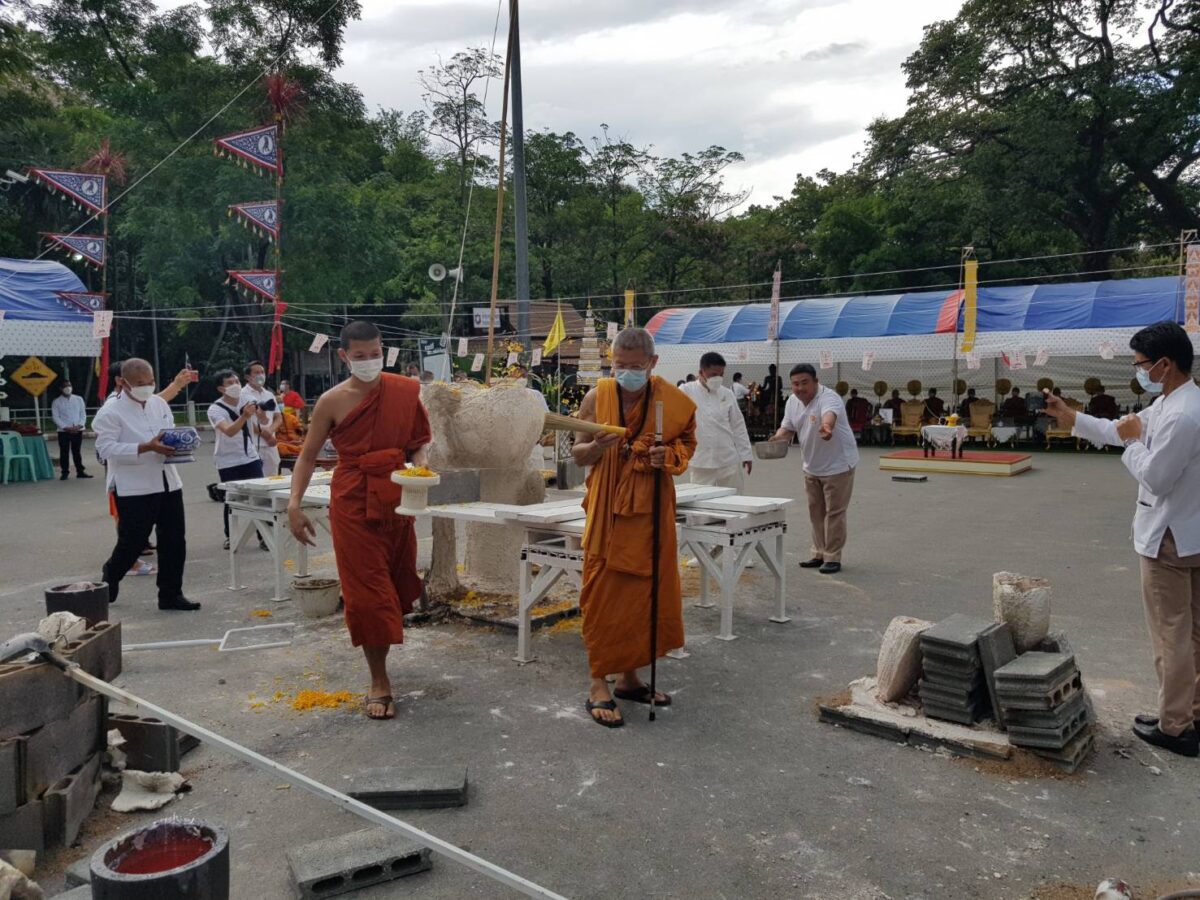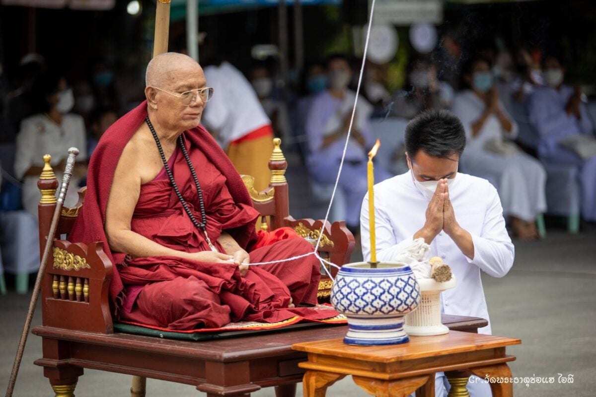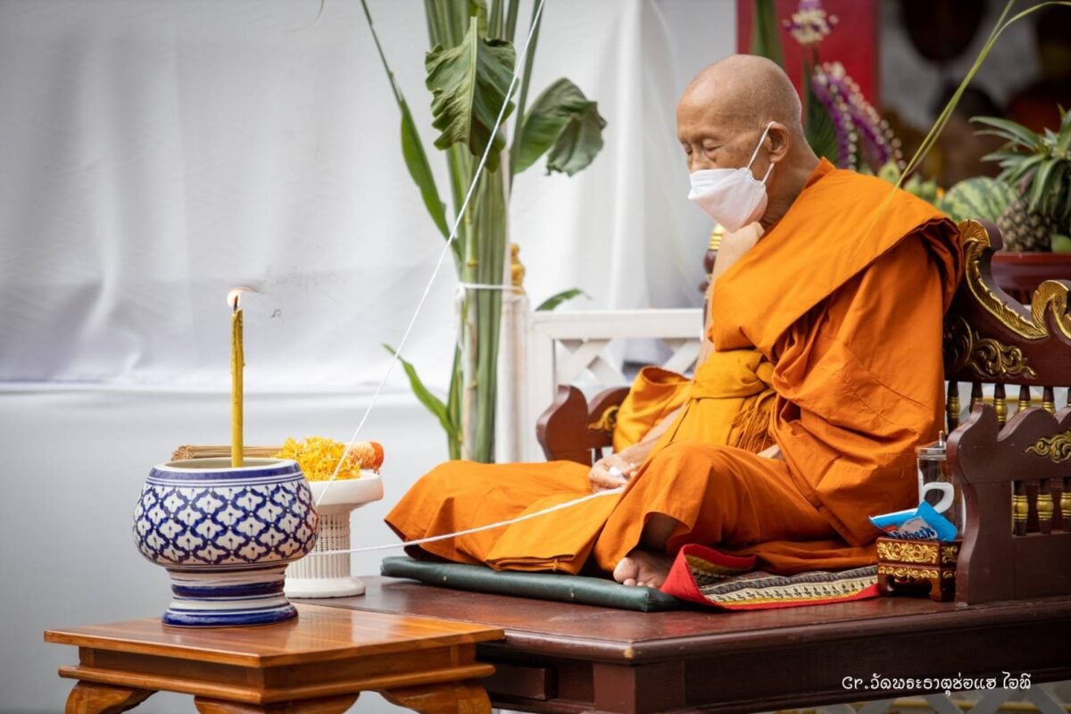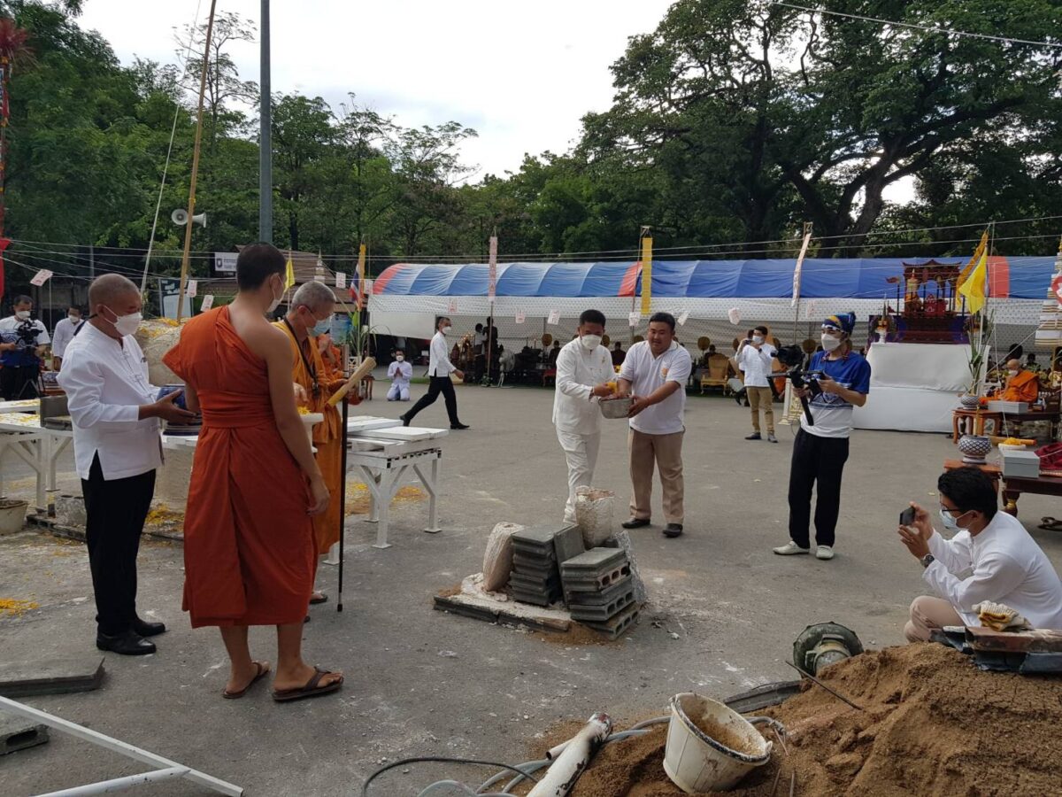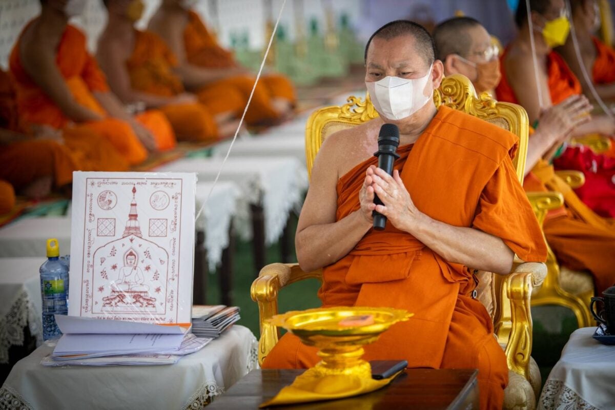 ต่อด้วย เวลา 11.19 น ฃ พระราชปัญญาภรณ์ รองเจ้าคณะภาค 6 วัดนางชี พระอารามหลวง กทม.นำพระมหาเถราจารย์ เจริญพระพุทธมนต์ ธัมมจักกัปปวัตนสูตร เสร็จแล้วโปรยข้าวตอกดอกไม้ และประพรหมน้ำพระพุทธมนต์ เงินแท่ง พระสงฆ์เจริญชยมงคลคาถา