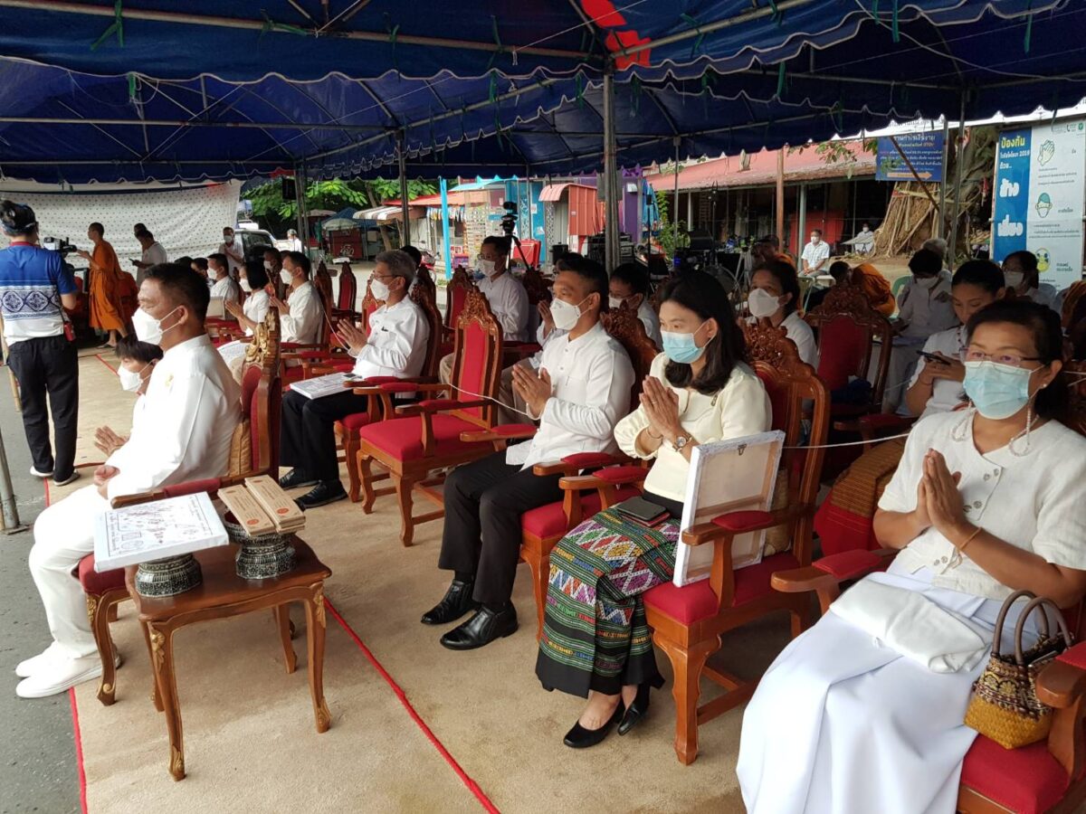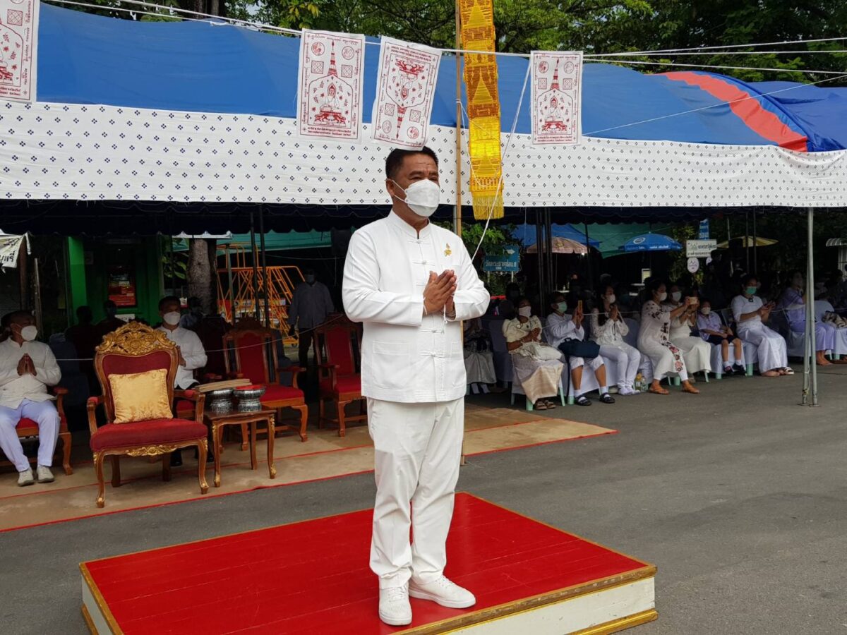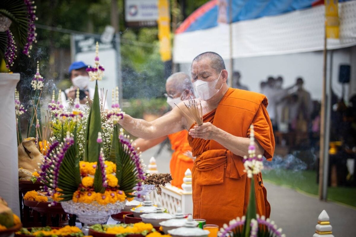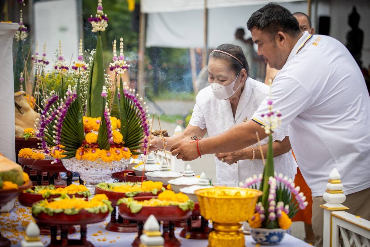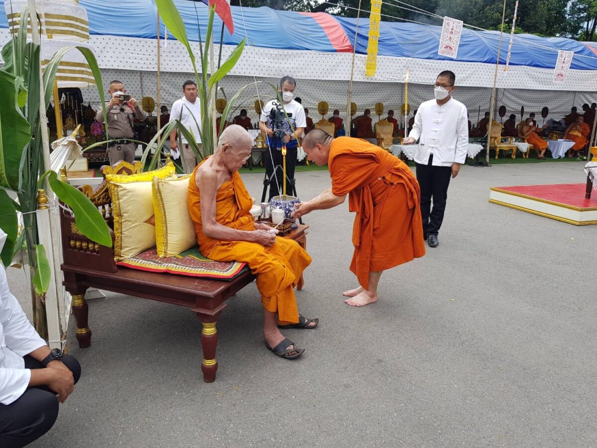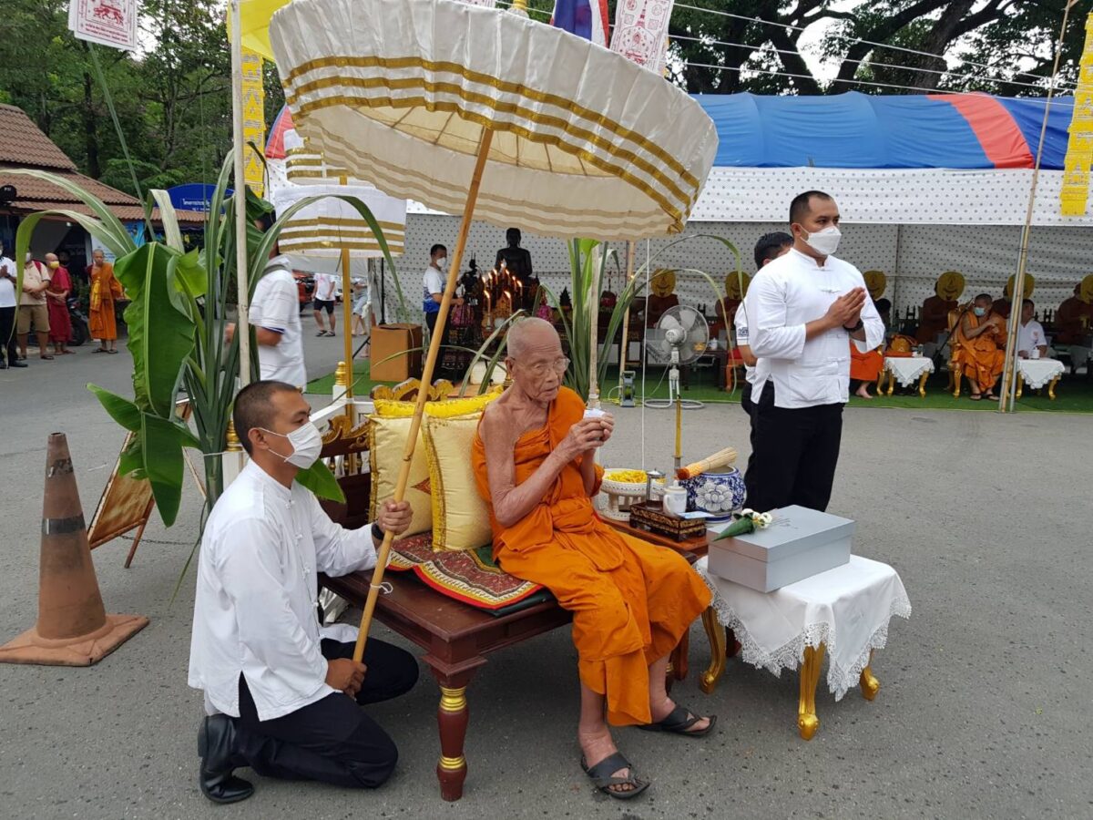 ต่อด้วย เวลา 11.19 น ฃ พระราชปัญญาภรณ์ รองเจ้าคณะภาค 6 วัดนางชี พระอารามหลวง กทม.นำพระมหาเถราจารย์ เจริญพระพุทธมนต์ ธัมมจักกัปปวัตนสูตร เสร็จแล้วโปรยข้าวตอกดอกไม้ และประพรหมน้ำพระพุทธมนต์ เงินแท่ง พระสงฆ์เจริญชยมงคลคาถา