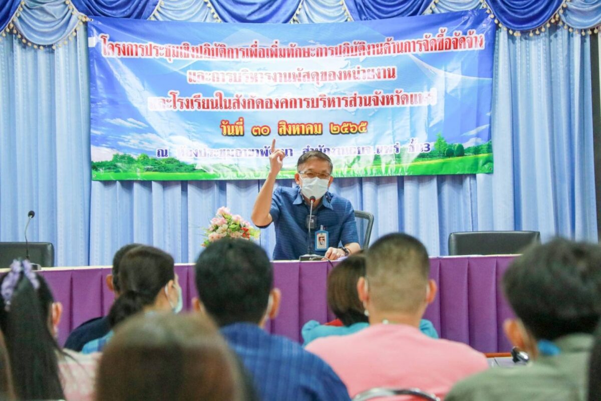 เมื่อวันที่ 30 สิงหาคม 2565 นายอนุวัธ วงศ์วรรณ นายกองค์การบริหารสส่วนจังหวัดแพร่ มอบหมายให้ นายพิภพ ถานะวุฒิพงศ์ รองนายกองค์การบริหารส่วนจังหวัดแพร่ เป็นประธานเปิดโครงการประชุมเชิงปฏิบัติการเพื่อเพิ่มทักษะการปฏิบัติงานด้านการจัดซื้อจัดจ้างและการบริหารงานพัสดุของหน่วยงานและโรงเรียนในสังกัดองค์การบริหารส่วนจังหวัดแพร่ โดยมี ว่าที่ ร.ต.ศุภชัย ทานะขันธ์ ปลัดองค์การบริหารส่วนจังหวัดแพร่, นางสาวปาริชาติ หิรัญรัตน์ รองปลัดองค์การบริหารส่วนจังหวัดแพร่ พร้อมด้วย หัวหน้าส่วนราชการ บุคลากรทางการศึกษาโรงเรียนในสังกัดองค์การบริหารส่วนจังหวัดแพร่ ทั้ง 3 โรงเรียน และเจ้าหน้าที่ผู้ปฏิบัติงานด้านการจัดซื้อจัดจ้าง และการบริหารงานพัสดุโดยตรงขององค์การบริหารส่วนจังหวัดแพร่ เข้าร่วมโครงการ ณ ห้องประชุมอาชาพัฒนา องค์การบริหารส่วนจังหวัดแพร่