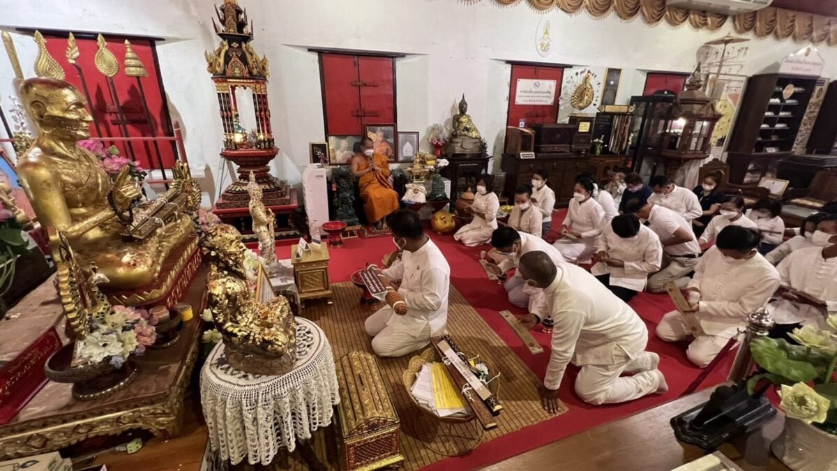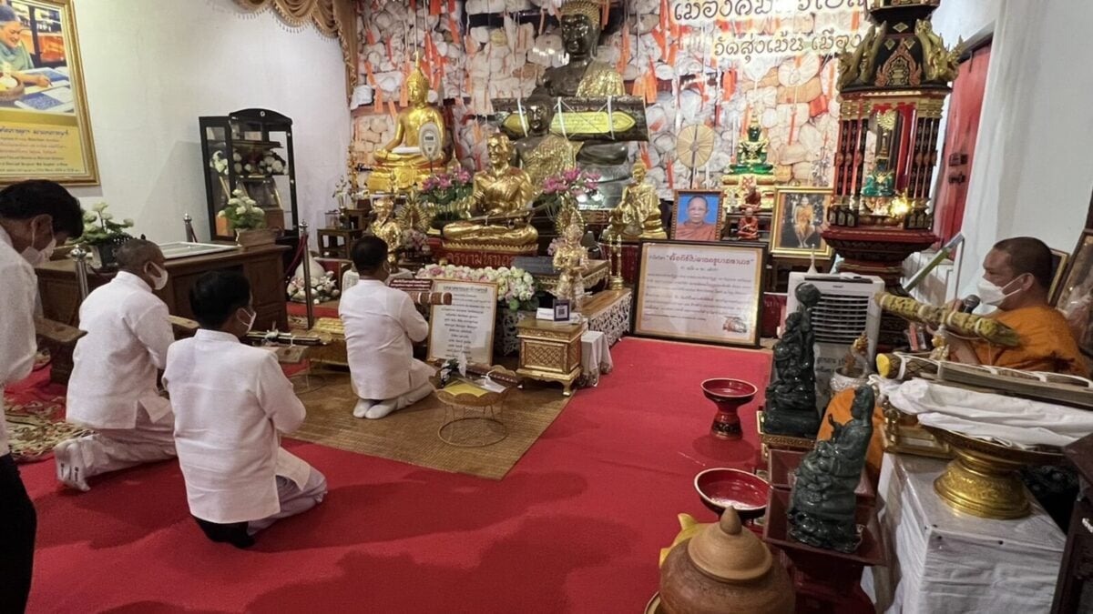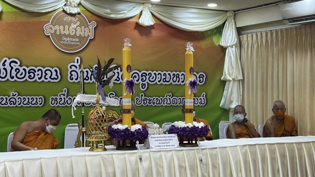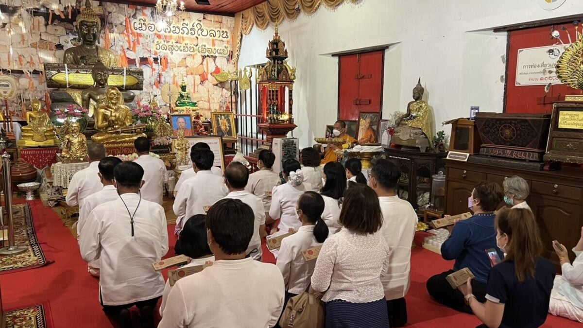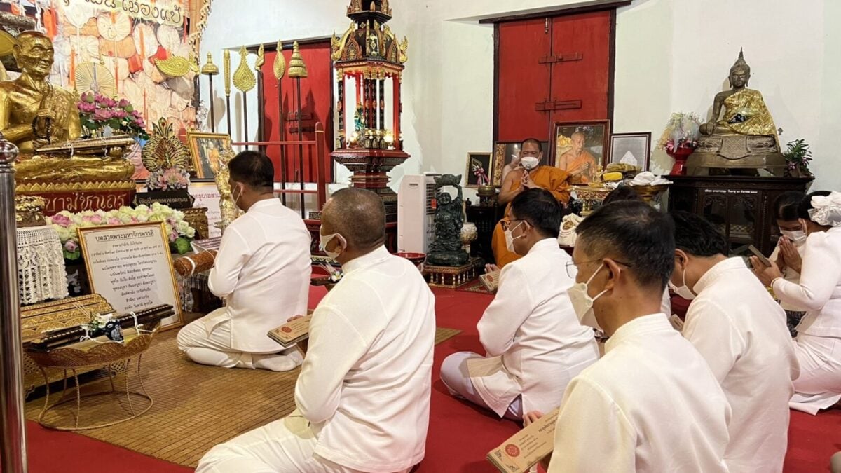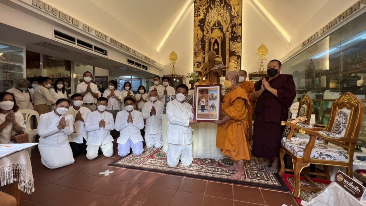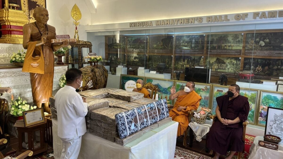จากนั้น เวลา 15.30 น. ณ ขอชีวประวัติครูบามหาเถรวัดสูงเม่น นายสมหวัง พ่วงบางโพ ผู้ว่าราชการจังหวัดแพร่ ได้ถวายคัมภีร์ มหามูลนิพพานสูตร ฉบับปริวรรตและแปลจาก คัมภีร์ใบลานอักษรล้านนา ต้นฉบับวัดสูงเม่น พ.ศ 2307 ซึ่งเป็นฉบับเก่าแก่ที่สุดในล้านนา โดยเนื้อหาในคัมภีร์กล่าวถึง แนวทางปฏิบัติเพื่อความพ้นทุกข์ เข้าสู่มรรคผลนิพพาน ตามคติธรรมของพระพุทธศาสนา โดยได้ถวายทั้งหมดจำนวน 1,500 ผูก ไว้กับสถาบันอนุรักษ์คัมภีร์ใบลาน วัดสูงเม่น และจัดทำอีก 1.3 หมื่นผูก เพื่อเป็นจุดศูนย์กลางในการเผยแผ่ธรรมทาน ไปทั่วโลก และเพื่อถวายเป็นพุทธบูชา ถวายทดแทนคุณชาติ ศาสนาพระมหากษัตริย์ ถวายทดแทนคุณบิดามารดา และบุพการีทั้งหลาย ถวายทดแทนคุณครูบาอาจารย์ และถวายทดแทนคุณแผ่นดิน ทั้งนี้มีหัวหน้าส่วนราชการและพุทธศาสนิกชนร่วมงานถวายเป็นจำนวนมาก