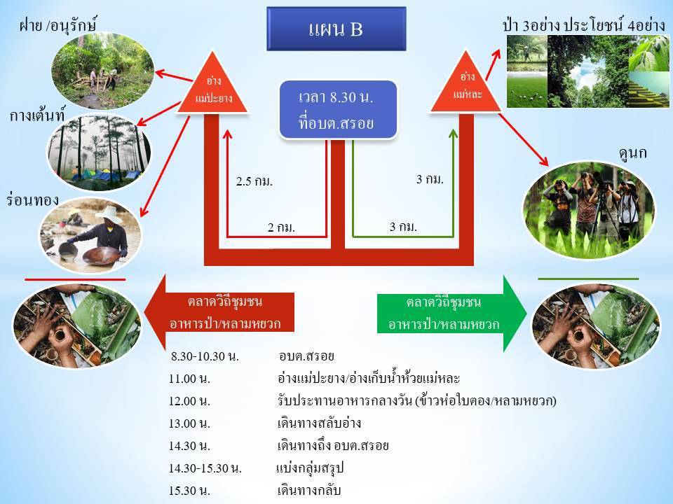 โดยมี นายอัมพร ฐานะวุฒิกุล นายก อบต.สรอย กล่าวต้อนรับ ซึ่งการจัดการอบรมในครั้งนี้ ทาง อบจ.แพร่ร่วมกับสำนักจัดการทรัพยากรป่าไม้ที่ 3 สาขาแพร่ เครือข่ายป่าชุมชม จ.แพร่ จัดฝึกอบรมเครือข่ายอนุรักษ์ธรรมชาติและสิ่งแวดล้อม เรื่องการทบทวนการดำเนินงานป่าชุมชน การบริหารจัดการป่าพื้นที่อนุรักษ์ และพื้นที่ใช้ประโยชน์เพื่อให้เกิดรายได้ในการบริหารป่าชุมชน ในท้องที่ จ.แพร่ มีป่าชุมชน ทั้งหมด 367 ป่าชุมชน การอบรมครั้งนี้เป็นป่านำร่อง 34 แห่ง มีโจทย์อยู่ว่า ผู้ที่เป็นสมาชิกเครือข่ายจะนำความรู้นี้ไปขยายต่อยอดได้อย่างไร ที่จะให้ชุมชน ได้รับผลประโยชน์จากป่าอย่างไรบ้าง แล้วเราจะทำอย่างไรที่จะให้ได้รับผลประโยชน์สูงสุด ซึ่งได้มีวิทยากรมาให้ความรู้แนะนำในทางทฤษฎี ช่วงบ่ายออกไปปฎิบัติในพื้นที่จริง ป่าบนอ่างห้วยแม่ปะยาง แม่ขมิง ม.2 และและป่าบนอ่างห้วยแม่หละ ดงเจริญ ม.9 วิธีกางเต็นท์พักแรมชมธรรมชาติ และการดำรงชีพในป่าเชิงธรรมชาติ โดยไม่ทำลายธรรมชาติ ทางระบบนิเวศวิทยา