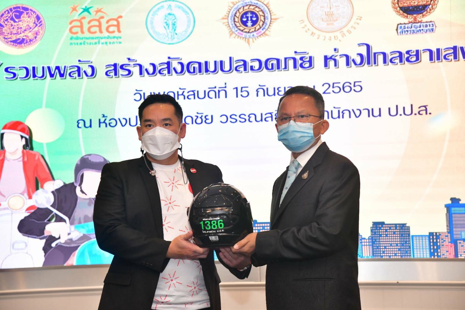 ผู้สื่อข่าวรายงานว่า ในช่วงท้ายกิจกรรม นายสมศักดิ์ ยังได้ร่วมมอบหมวกกันน็อค เพื่อรณรงค์แจ้งเบาะแสยาเสพติด พร้อมปล่อยขบวนมอเตอร์ไซค์รับจ้าง และไรเดอร์ เพื่อเป็นการคิกออฟ ให้ทุกภาคส่วนช่วยกันแจ้งเบาะแสยาเสพติด ผ่านสายด่วน 1386 ด้วย