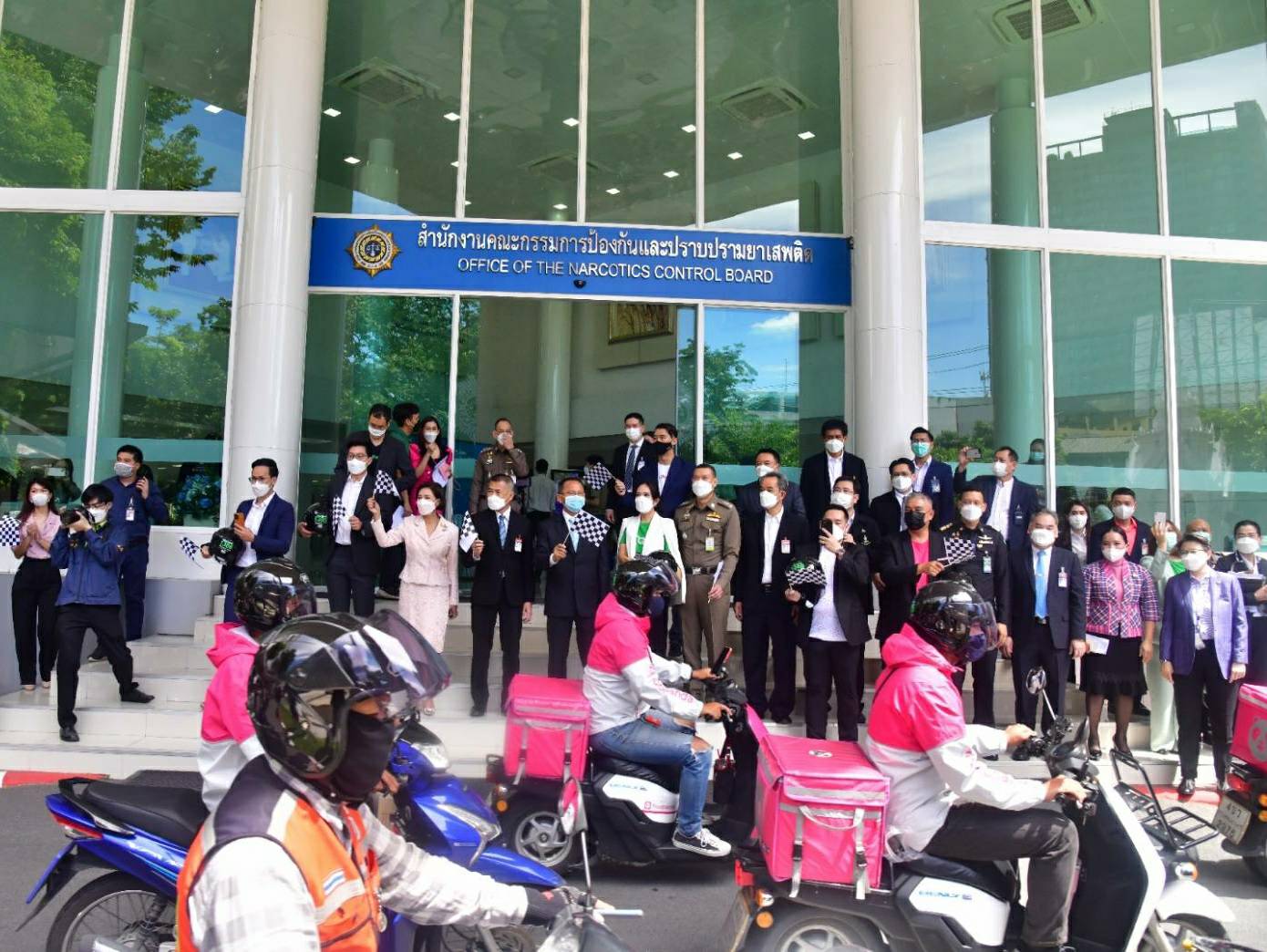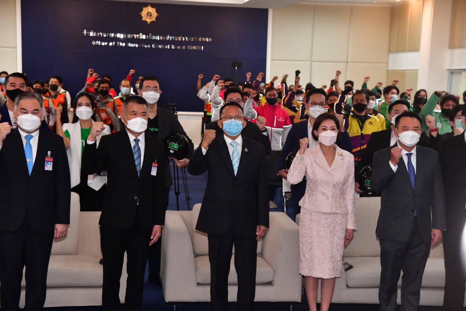 “ผมจึงอยากขอความร่วมมือทุกท่าน ทั้ง ไรเดอร์ วินมอเตอร์ไซค์ ช่วยกันเป็นหูเป็นตาให้กับทางราชการ เพื่อปัญหายาเสพติดจะได้ดีขึ้น โดยทุกท่านสามารถแจ้งเบาะแสได้ที่สายด่วน ป.ป.ส. 1386 ซึ่งจะมีรางวัลการแจ้งเบาะแส 5% ของมูลค่าทรัพย์ที่ยึดได้ โดยอย่าคิดว่า แจ้งรายเล็กจะได้น้อย เพราะหากมีการขยายผลไปสู่รายใหญ่ได้ คนแจ้งก็จะได้รางวัลนำจับไปด้วย ซึ่งปีนี้ เราสามารถยึดทรัพย์เครือข่ายยาเสพติดได้แล้ว 10,300 ล้านบาท จากเป้าหมายที่วางไว้ 10,000 ล้านบาท” รมว.ยุติธรรม กล่าว