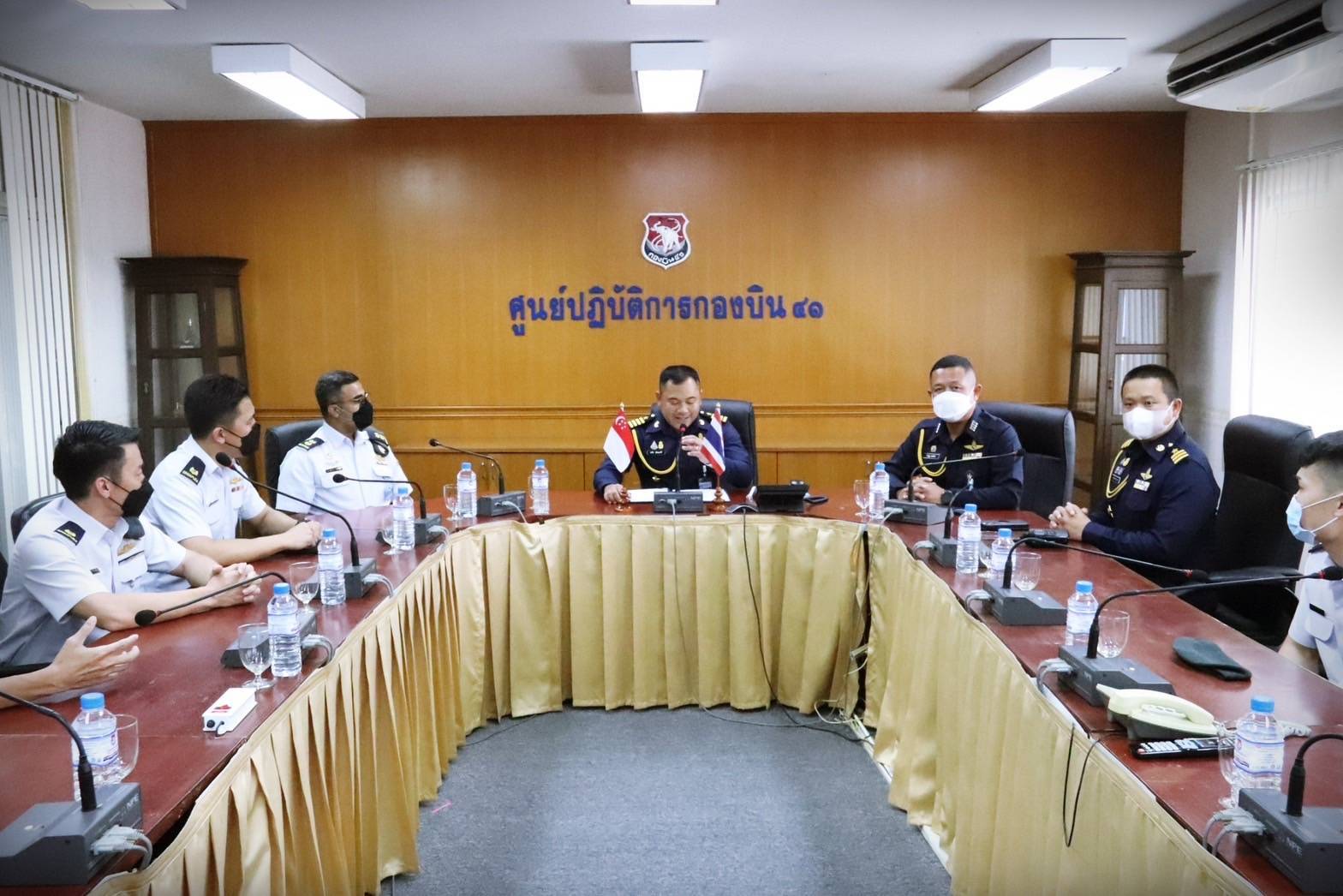 นาวาอากาศเอก วงศ์วิวัติ วัฒนวรางกูร ผู้บังคับการกองบิน 41 ให้การต้อนรับ Lt.Col.Rajpal Singh, Commanding Officer (Head of Delegation) และคณะกองทัพอากาศสิงคโปร์ ที่เดินทางมาทัศนศึกษาสถานที่สำคัญต่างๆ ของจังหวัดเชียงใหม่ และเยี่ยมคำนับผู้บังคับการกองบิน 41 ตามโครงการแลกเปลี่ยนการเยือนระหว่างกองทัพอากาศไทยและกองทัพอากาศสิงคโปร์ ระหว่างวันที่ 14 – 16 กันยายน 2565 ณ กองบิน 41