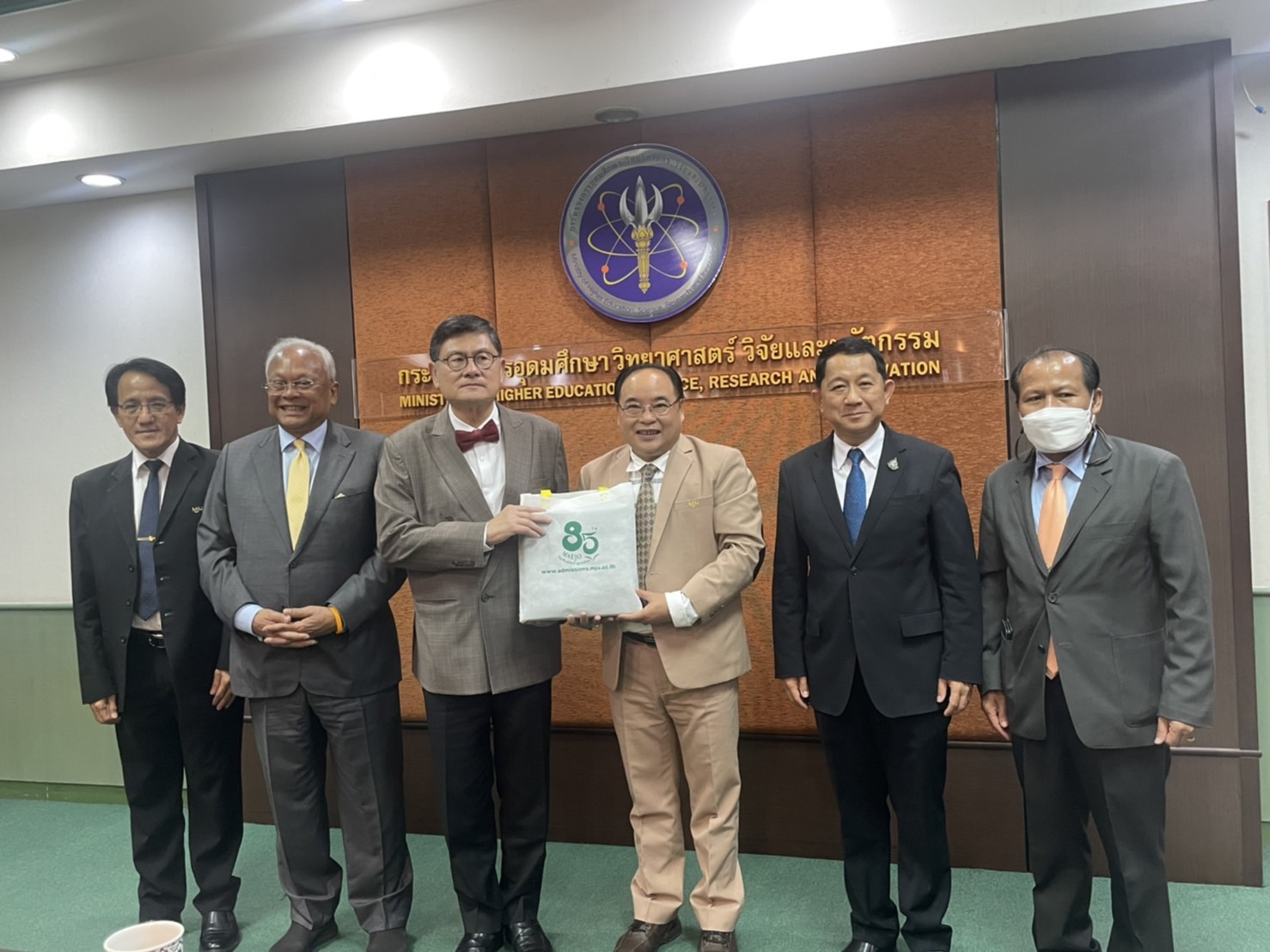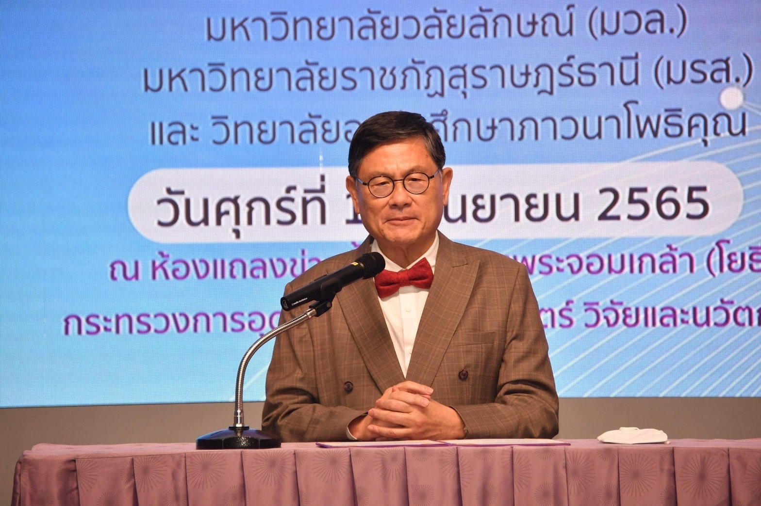 วันศุกร์ที่ 16 กันยายน 2565 รศ.ดร.วีระพล ทองมา อธิการบดีมหาวิทยาลัยโจ้ รองศาสตราจารย์ ดร.เกรียงศักดิ์ ศรีเงินยวง รองอธิการบดี ผศ.ดร.ณัฐวุฒิ ดุษฎี รองอธิการบดี เข้าร่วมพิธีลงนามบันทึกความเข้าใจสถาบันวิจัยวิทยาศาสตร์และเทคโนโลยีแห่งประเทศไทย (วว.) ร่วมกับ สำนักงานพัฒนาวิทยาศาสตร์และเทคโนโลยีแห่งชาติ(สวทช.) สำนักงานการวิจัยแห่งชาติ (วช.) มหาวิทยาลัยเทคโนโลยีราชมงคล 9 แห่ง มหาวิทยาลัยเกษตรศาสตร์ มหาวิทยาลัยแม่โจ้ มหาวิทยาลัยสงขลานครินทร์ มหาวิทยาลัยวลัยลักษณ์ มหาวิทยาลัยราชภัฏสุราษฎร์ธานี และวิทยาลัยอาชีวศึกษาภาวนาโพธิคุณ โดยมี ศาสตราจารย์พิเศษ ดร.เอนก เหล่าธรรมทัศน์ รัฐมนตรีว่าการอุดมศึกษา วิทยาศาสตร์ วิจัยและนวัตกรรม (อว.) เป็นประธานในพิธี