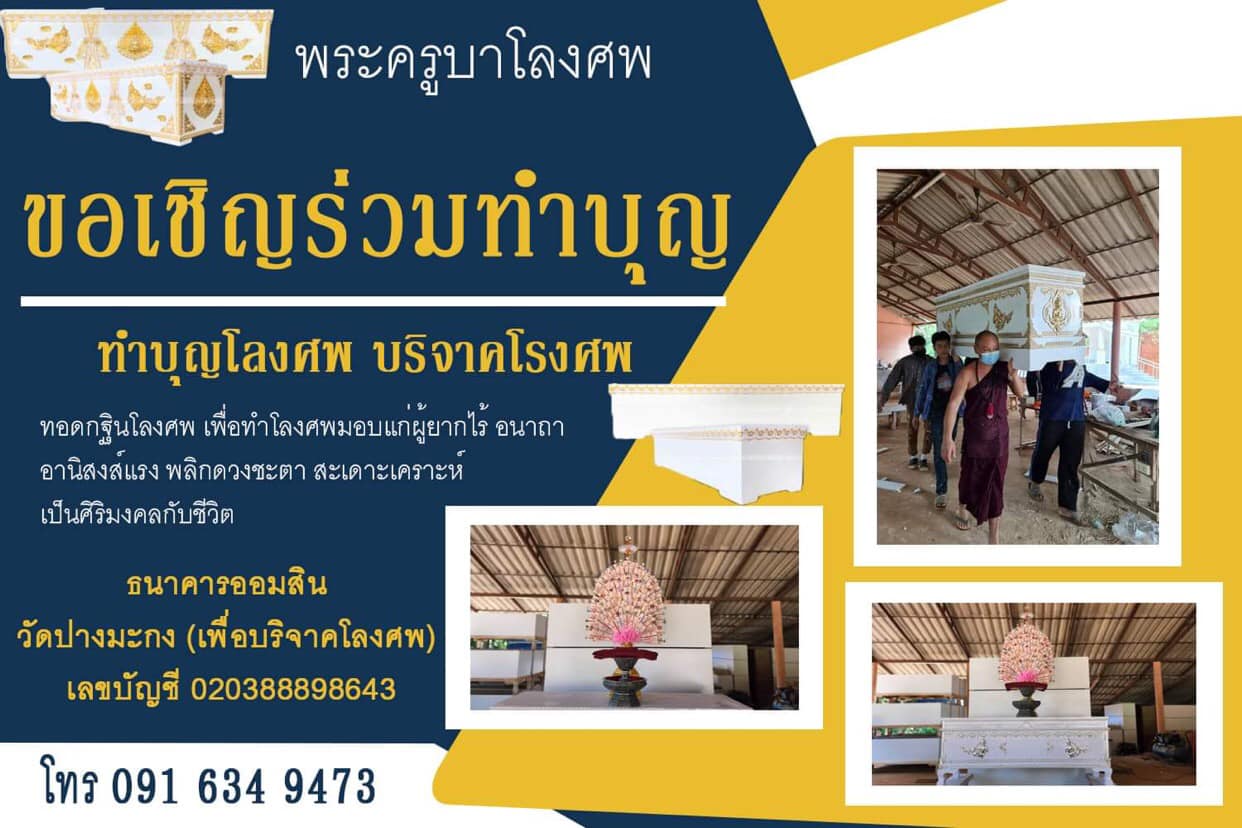 สำหรับ ผู้ที่ต้องการร่วมทำบุญ กับ ทางวัดปางมะกง ตามกำลังศรัทธา สำหรับทำโลงศพ เพื่อบริจาคให้ผู้ยากไร้ต่อไปได้ที่ ธนาคารออมสิน บัญชี วัดปางมะกง(เพื่อบริจาคโลงศพ) เลขที่บัญชี : 0203-8889-8643 บริจาคโลงศพ พลิกฟื้นชะตา จากร้ายเป็นดี อานิสงค์แรง หรือโทรเบอร์ ครูบาโลงศพ 091-6349473