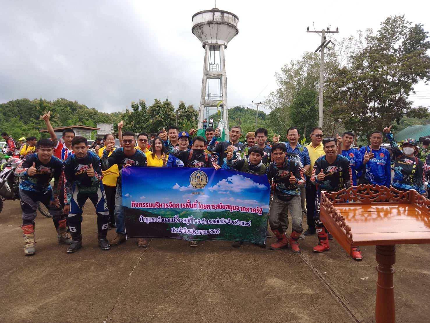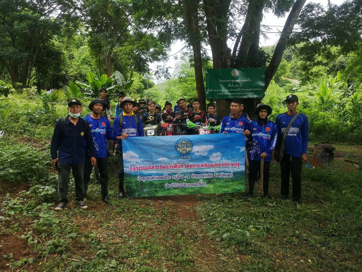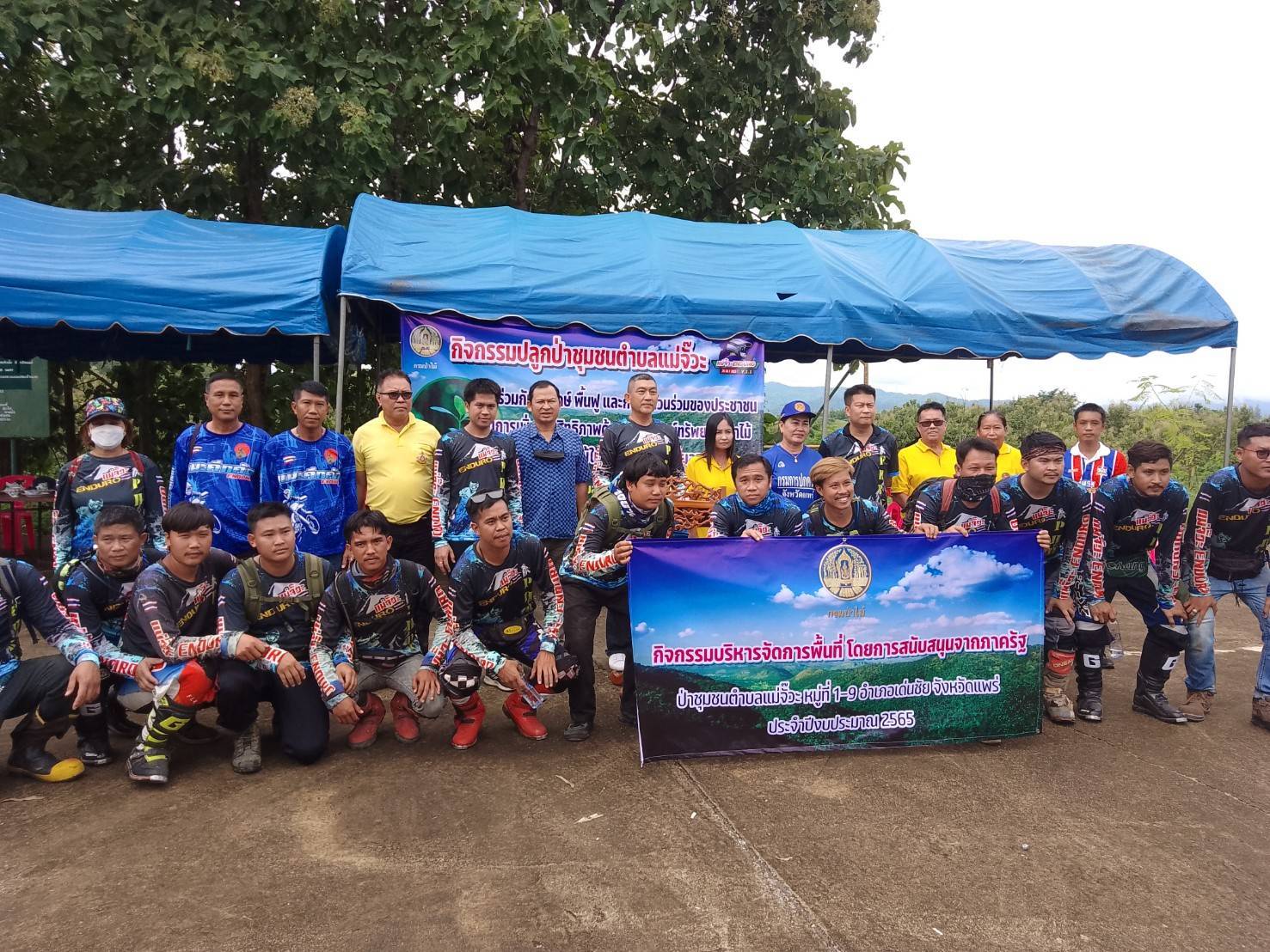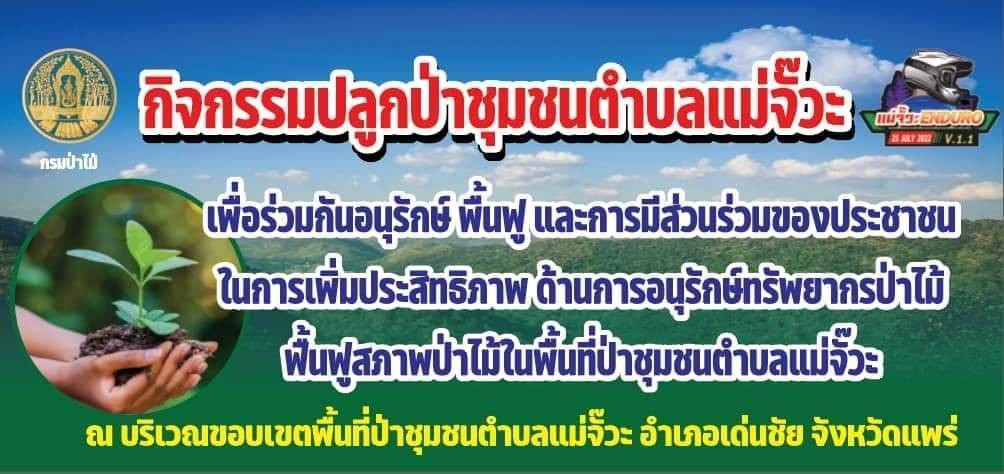 ………กำนันหยา นายสิทธิชัย กาศเจริญ กำนันตำบลแม่จั๊วะ อ.เด่นชัย จ.แพร่ประธานคณะกรรมการป่าชุมชนตำบลแม่จั๊วะ กล่าวว่าในพื้นที่ป่าชุมชนตำบลแม่จั๊วะเรามีพื้นที่ 470 ไร่ และอนาคตจะมีการขอพื้นที่ป่าชุมชนเพิ่ม เพื่อให้ประชาชนได้ช่วยกันจัดการดูแลรักษาพื้นที่ป่าชุมชนเพิ่มมากขึ้น สำหรับการจัดกิจกรรมในครั้งนี้ โดยคณะกรรมการป่าชุมชนตำบลแม่จั๊วะ พร้อมด้วยผู้นำชุมชน ประชาชนตำบลแม่จั๊วะ กลุ่มแม่จั๊วะเอ็นดูโร่ และนักบิด 2 ล้อเครือข่ายสายป่าชอบปลูกป่า และมีทักษะในการขี่รถอย่างปลอดภัยได้มาร่วมกิจกรรมนำต้นไม้เข้าไปปลูกในพื้นที่ป่าชุมชนตำบลแม่จั้วะ นำต้นไม้ใส่เป้ของตนเอง ช่วยกันขนขึ้นไปปลูกในเขตป่าชุมชนตำบลแม่จั๊วะ ที่เส้นทางนั้นลำบากต้องใช้รถวิบากในการเข้าถึงพื้นที่เขตป่าชุมชนตำบลแม่จั๊วะ โดยการสนับสนุนกล้าไม้จากศูนย์เพาะชำกล้าไม้แพร่ ซึ่งกิจกรรมจัดขึ้นเพื่อกระตุ้นจิตสำนึกให้ประชาชนมีส่วนร่วมในการฟื้นฟูทรัพยากรป่าไม้และป่าชุมชน และมีการลงทะเบียนระดมทุนสมทบจัดหารายได้สร้างสำนักสงฆ์ห้วยป่าแดงโตนตำบลแม่จั๊วะ