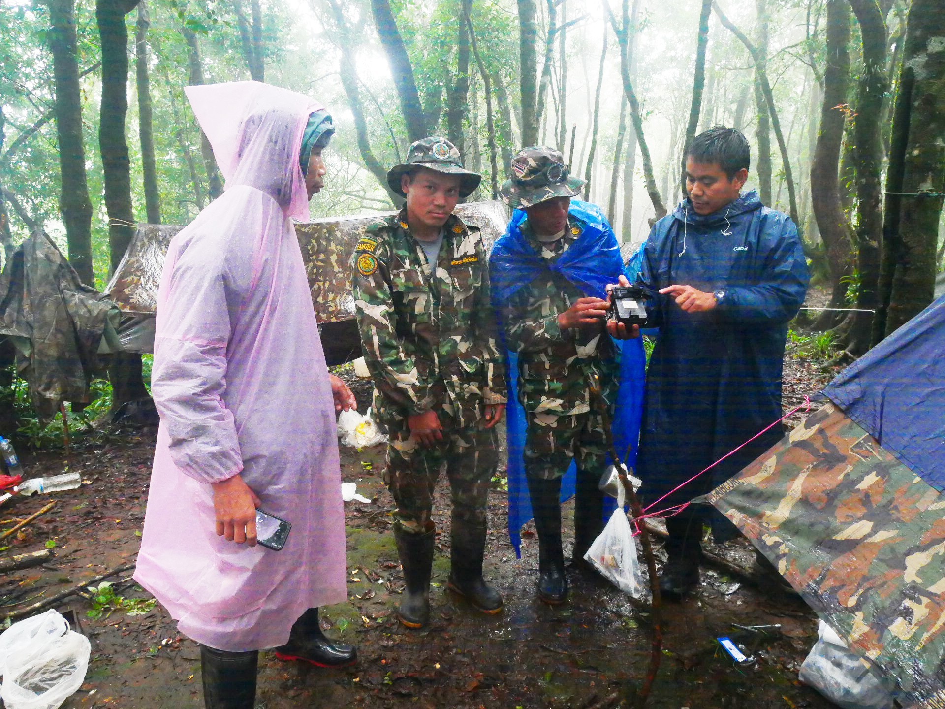 ในการลงพื้นสำรวจข้อมูลประชากรสัตว์ป่าโดยใช้ “กล้องดักถ่ายภาพ” (Camera trap)เป็นอีกหนึ่งในเครื่องบันทึกภาพและวีดีโอ ที่จะช่วยประเมินความหลากหลายประชากรสัตว์ป่าในพื้นที่ป่า ติดตั้งกล้องทั้งหมด 19 จุด ในเส้นทางจนถึงยอดดอยหัวสิงห์