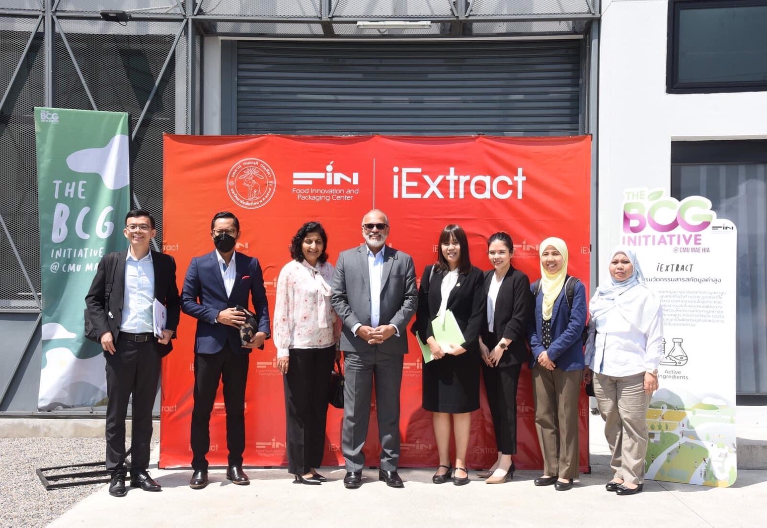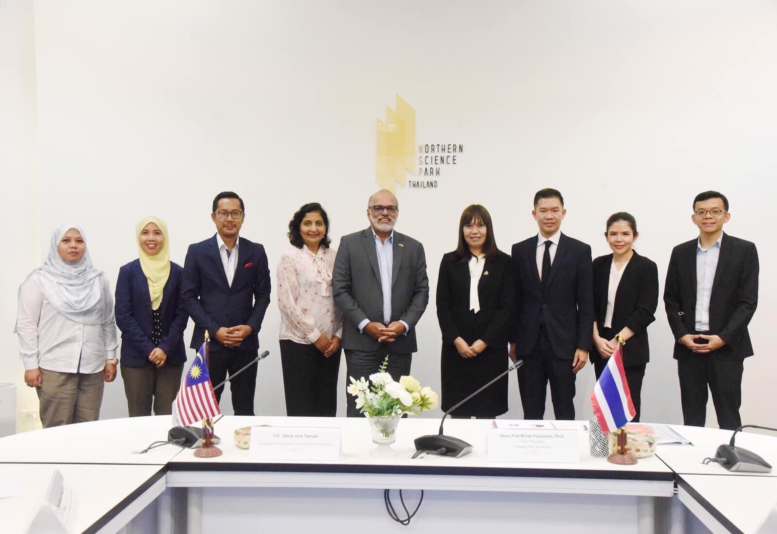 รองศาสตราจารย์ ดร.วินิตา บุณโยดม รองอธิการบดี มหาวิทยาลัยเชียงใหม่ พร้อมด้วยผู้ช่วยศาสตราจารย์ ดร.ชนม์เจริญ แสวงรัตน์ ผู้ช่วยอธิการบดีมหาวิทยาลัยเชียงใหม่ และรองศาสตราจารย์ ดร.ภญ.วรินทร รักษ์ศิริวณิช รองผู้อำนวยการศูนย์นวัตกรรมอาหารและบรรจุภัณฑ์ ให้การต้อนรับ ฯพณฯ ดาตุ๊ก โจจี แซมูเอล เอกอัครราชทูตมาเลเซียประจำประเทศไทย พร้อมคณะรวมจำนวน 11 คน ในโอกาสที่มาเยี่ยมชมมหาวิทยาลัยเชียงใหม่ ในวันพุธที่ 28 กันยายน 2565 ได้แก่ ศูนย์นวัตกรรมอาหารและบรรจุภัณฑ์ (FIN) ชั้น 3 อาคาร 1 คณะอุตสาหกรรมเกษตรมหาวิทยาลัยเชียงใหม่ เข้ารับฟังการบรรยายสรุป ณ ห้อง D 206 อุทยานวิทยาศาสตร์ภาคเหนือ เยี่ยมชมอาคารนวัตกรรมสารสกัดมูลค่าสูง IExtract และเข้าเยี่ยมชมอาคารต้นแบบนวัตกรรมอาหารครบวงจร ตลอดจนเข้าชมและเลือกซื้อสินค้าใน NSP INNO STORE เพื่อเรียนรู้เพิ่มเติมเกี่ยวกับนวัตกรรมที่เกี่ยวข้องกับเศรษฐกิจหมุนเวียนแบบชีวภาพ BIO-Circular Green Economy