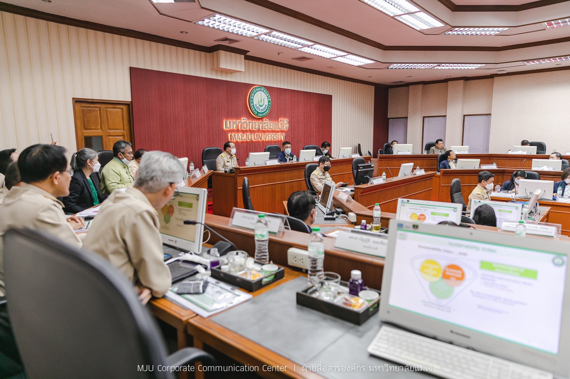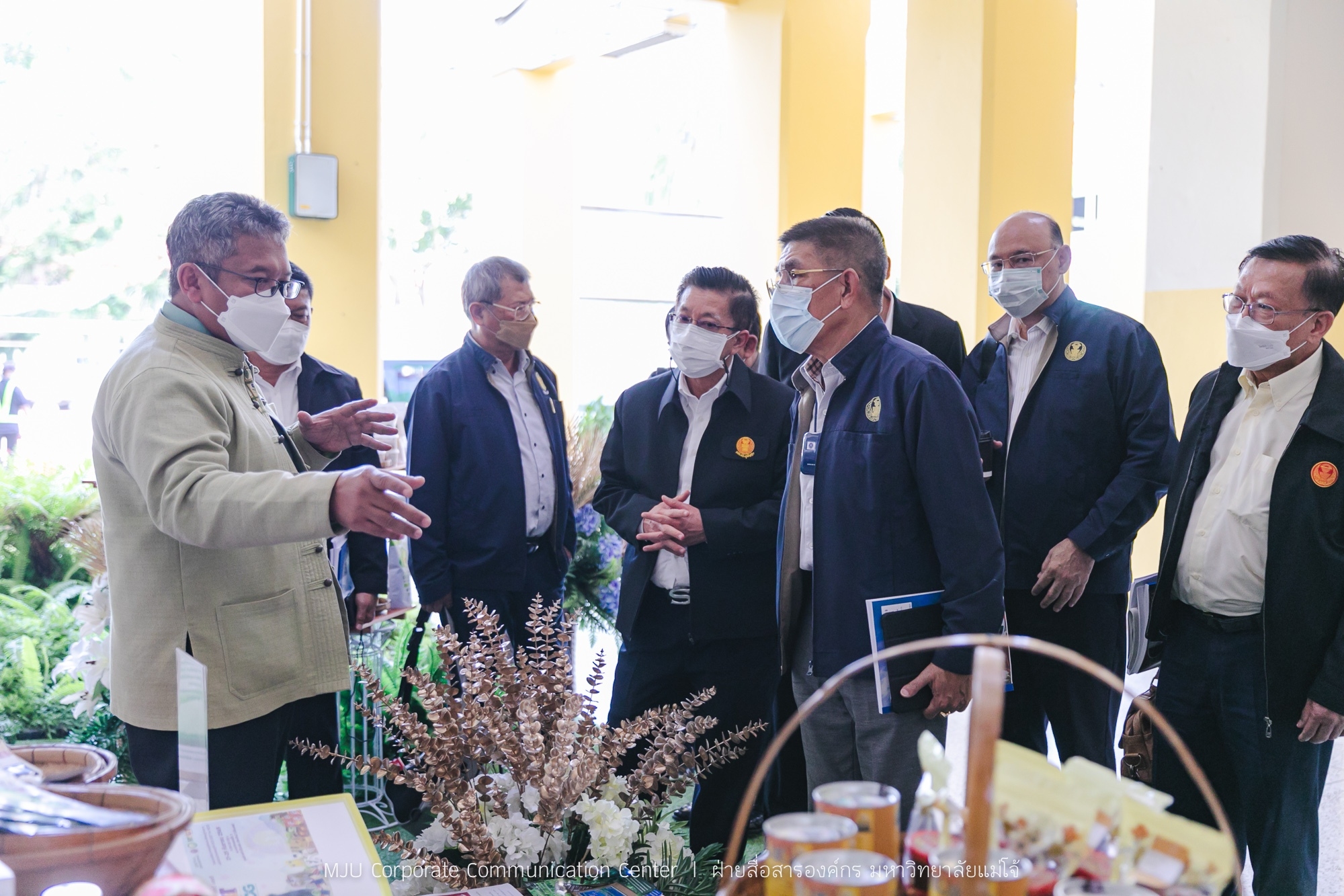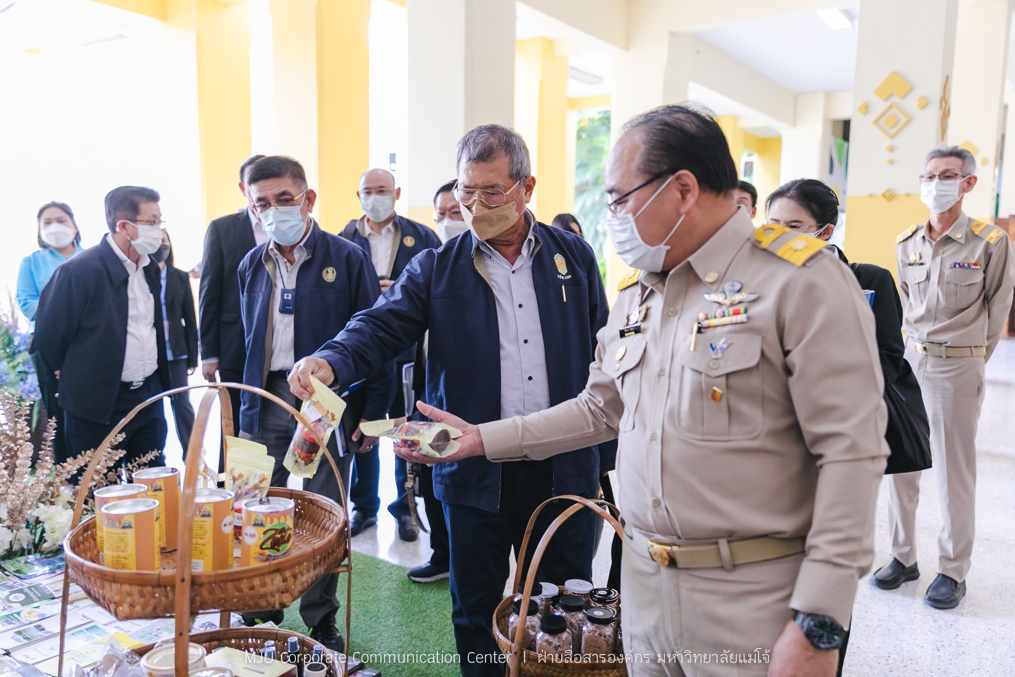 โอกาสนี้ รองศาสตราจารย์ ดร.วีระพล ทองมา อธิการบดีมหาวิทยาลัยแม่โจ้ พร้อมด้วยคณะผู้บริหารมหาวิทยาลัย และหน่วยงานที่เกี่ยวข้อง ร่วมให้การต้อนรับ พร้อมรายงานผลการใช้จ่ายและผลสัมฤทธิ์จากการใช้ประมาณ ประจำปี 2565 การจัดการศึกษา การวิจัยและนวัตกรรมที่ตอบโจทย์การพัฒนาประเทศ / การนำองค์ความรู้ด้านงานวิจัยและนวัตกรรมไปพัฒนาท้องถิ่น พร้อมทั้ง การบ่มเพาะบัณฑิตสู่การเป็นผู้ประกอบการ และโครงการยกระดับเศรษฐกิจและสังคมรายตำบลแบบบูรณาการ (1 ตำบล 1 มหาวิทยาลัย) พร้อมทั้งนำคณะศึกษาดูงานเยี่ยมชมนิทรรศการผลงานของมหาวิทยาลัยแม่โจ้ ณ สำนักงานมหาวิทยาลัย มหาวิทยาลัยแม่โจ้