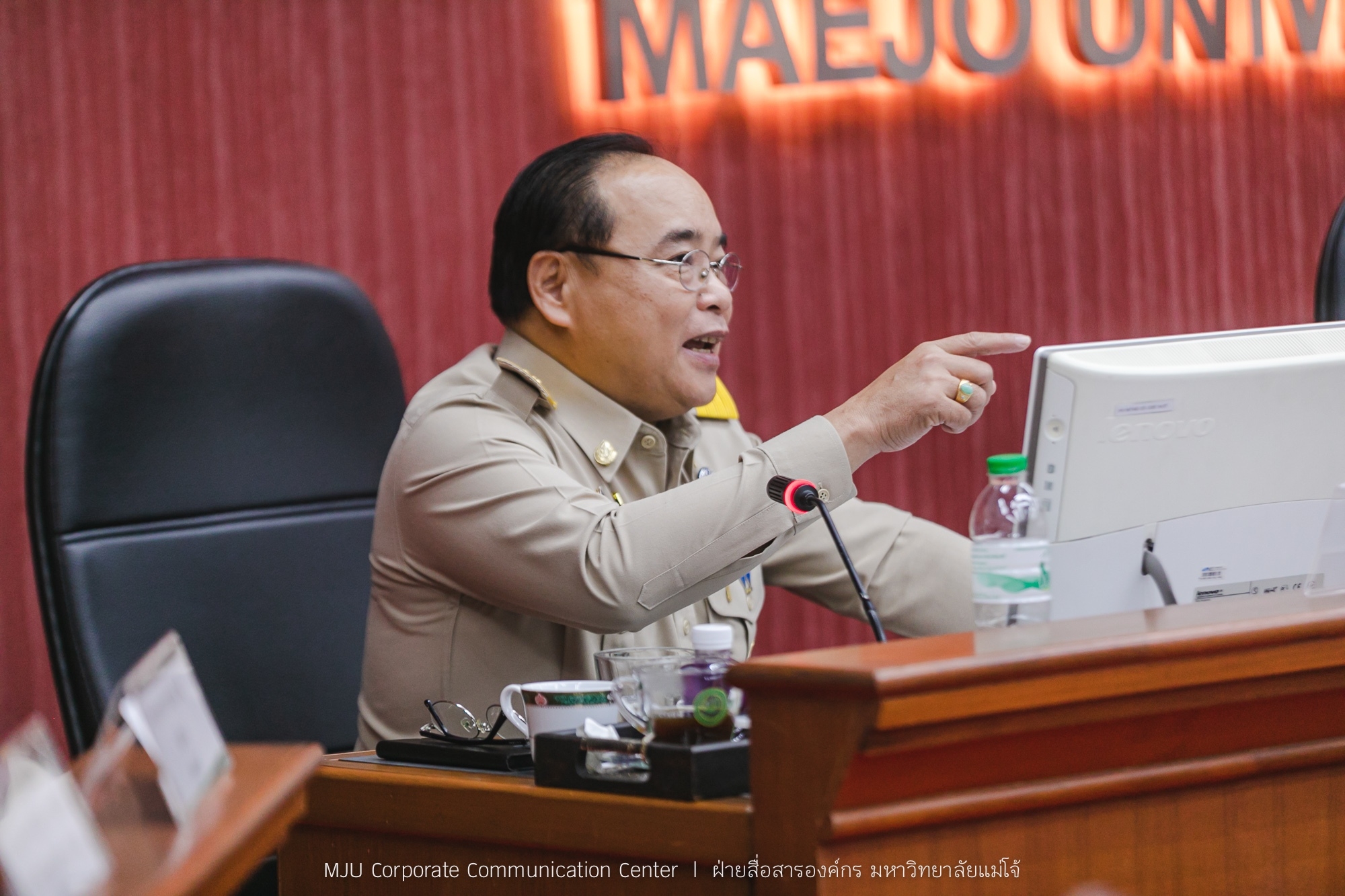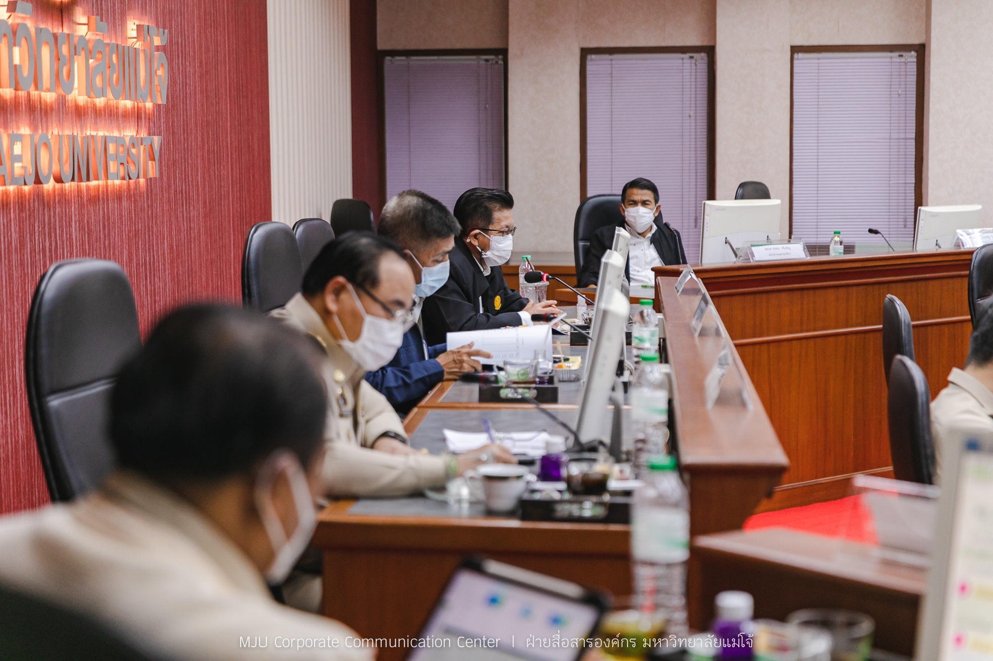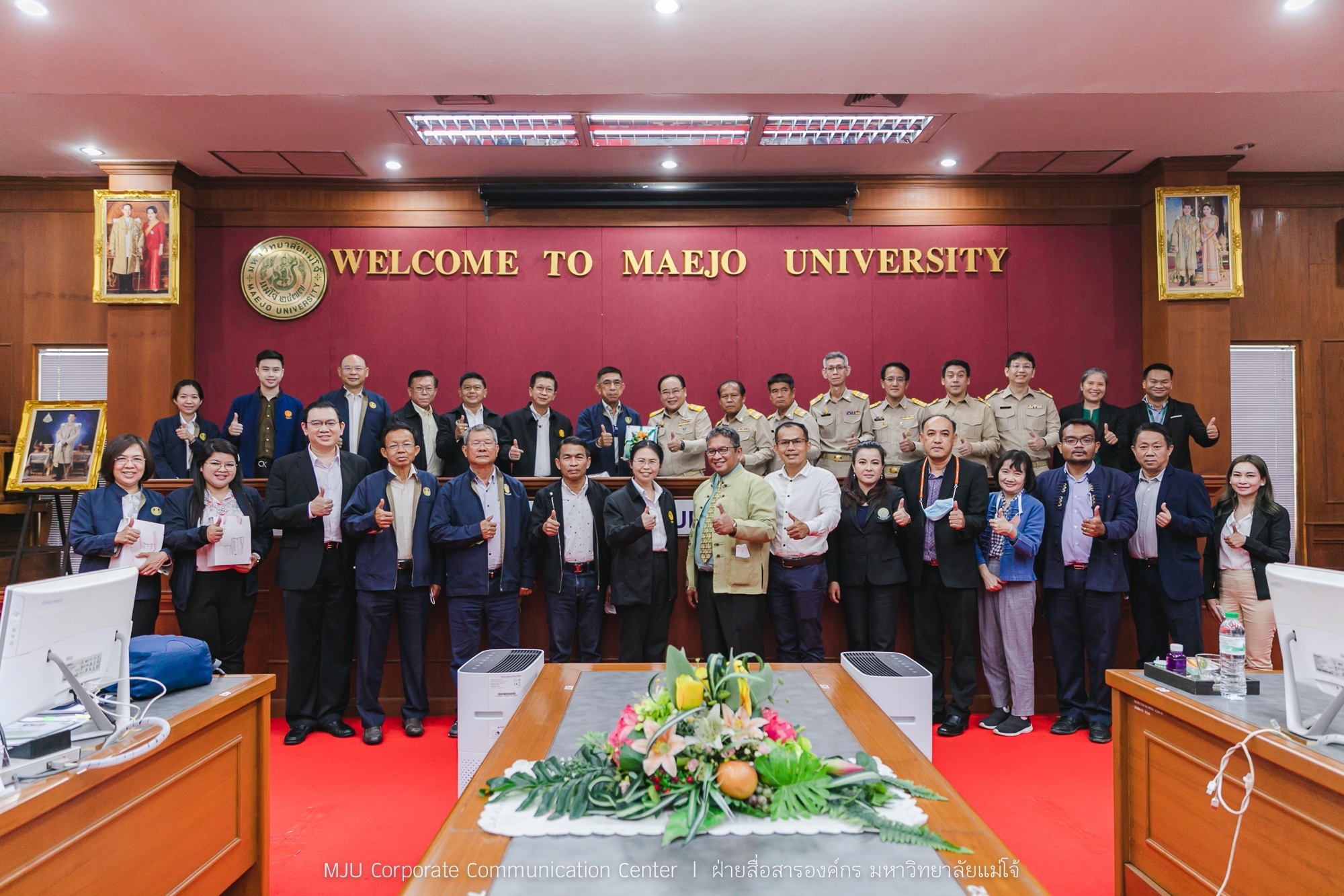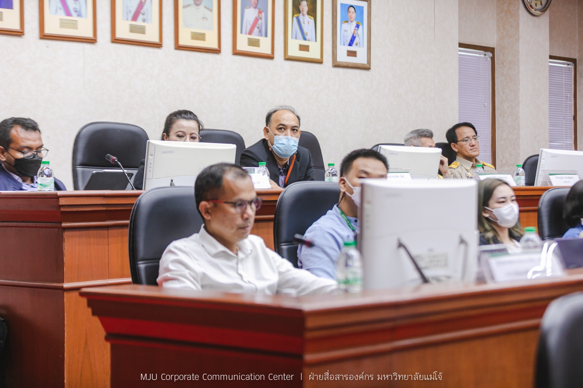 โอกาสนี้ รองศาสตราจารย์ ดร.วีระพล ทองมา อธิการบดีมหาวิทยาลัยแม่โจ้ พร้อมด้วยคณะผู้บริหารมหาวิทยาลัย และหน่วยงานที่เกี่ยวข้อง ร่วมให้การต้อนรับ พร้อมรายงานผลการใช้จ่ายและผลสัมฤทธิ์จากการใช้ประมาณ ประจำปี 2565 การจัดการศึกษา การวิจัยและนวัตกรรมที่ตอบโจทย์การพัฒนาประเทศ / การนำองค์ความรู้ด้านงานวิจัยและนวัตกรรมไปพัฒนาท้องถิ่น พร้อมทั้ง การบ่มเพาะบัณฑิตสู่การเป็นผู้ประกอบการ และโครงการยกระดับเศรษฐกิจและสังคมรายตำบลแบบบูรณาการ (1 ตำบล 1 มหาวิทยาลัย) พร้อมทั้งนำคณะศึกษาดูงานเยี่ยมชมนิทรรศการผลงานของมหาวิทยาลัยแม่โจ้ ณ สำนักงานมหาวิทยาลัย มหาวิทยาลัยแม่โจ้
