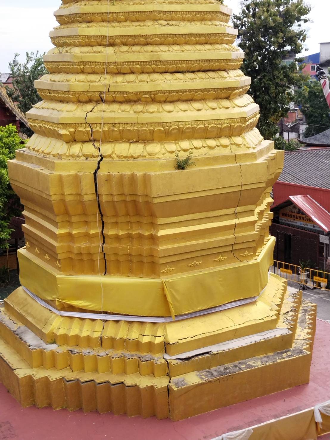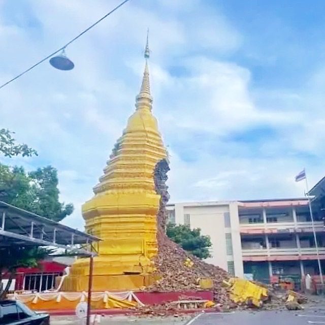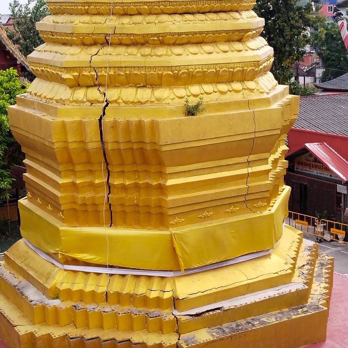 29 ก.ย.2565 – ผู้สื่อข่าวรายงานว่า ได้เกิดเหตุระทึก “องค์พระธาตุเจดีย์วัดศรีสุพรรณ” พระธาตุเก่าแก่ อายุกว่า 522 ปี บริเวณวัดศรีสุพรรณ ถนนวัวลาย ตำบลหายยา อำเภอเมือง จังหวัดเชียงใหม่ อยู่กลางเมืองเชียงใหม่ พังถล่มลงมาต่อหน้าหลังจากเจ้าหน้าที่สำนักศิลปากรที่ 7 กรมศิลปากรและผู้เกี่ยวข้องเข้าตรวจสอบความมั่นคง เพราะฝนตกหนักสะสมมีความเสี่ยงพังทลาย โดยพบรอยร้าวมีบางส่วนเริ่มพัง
