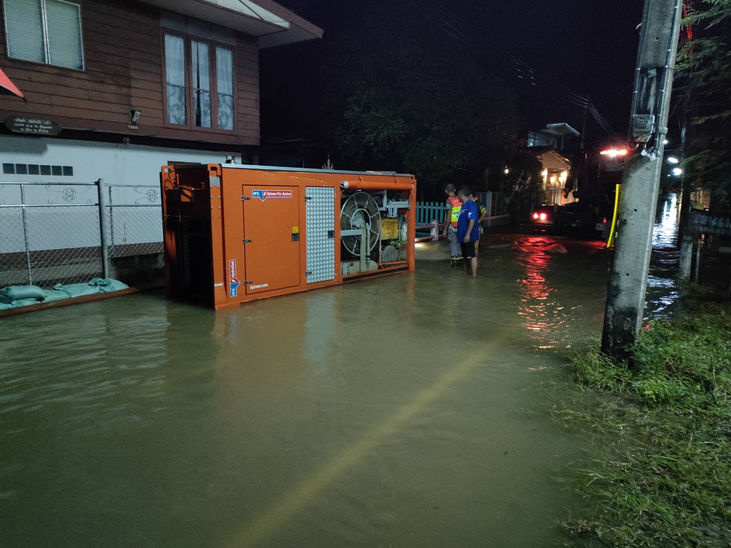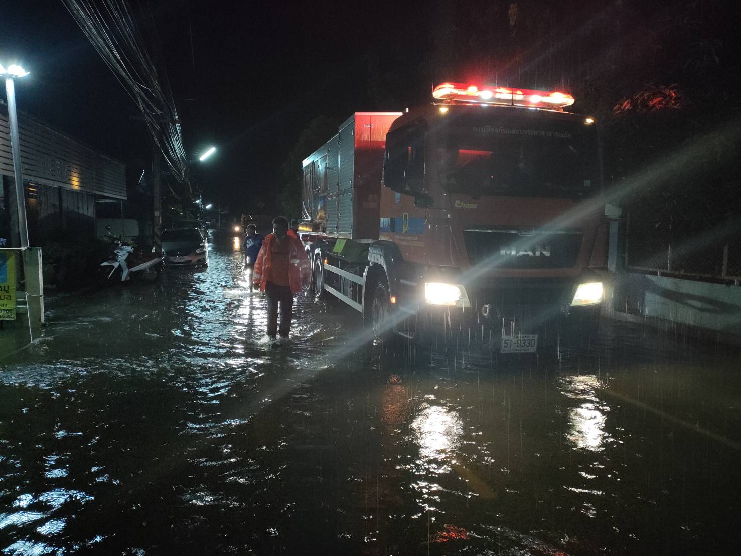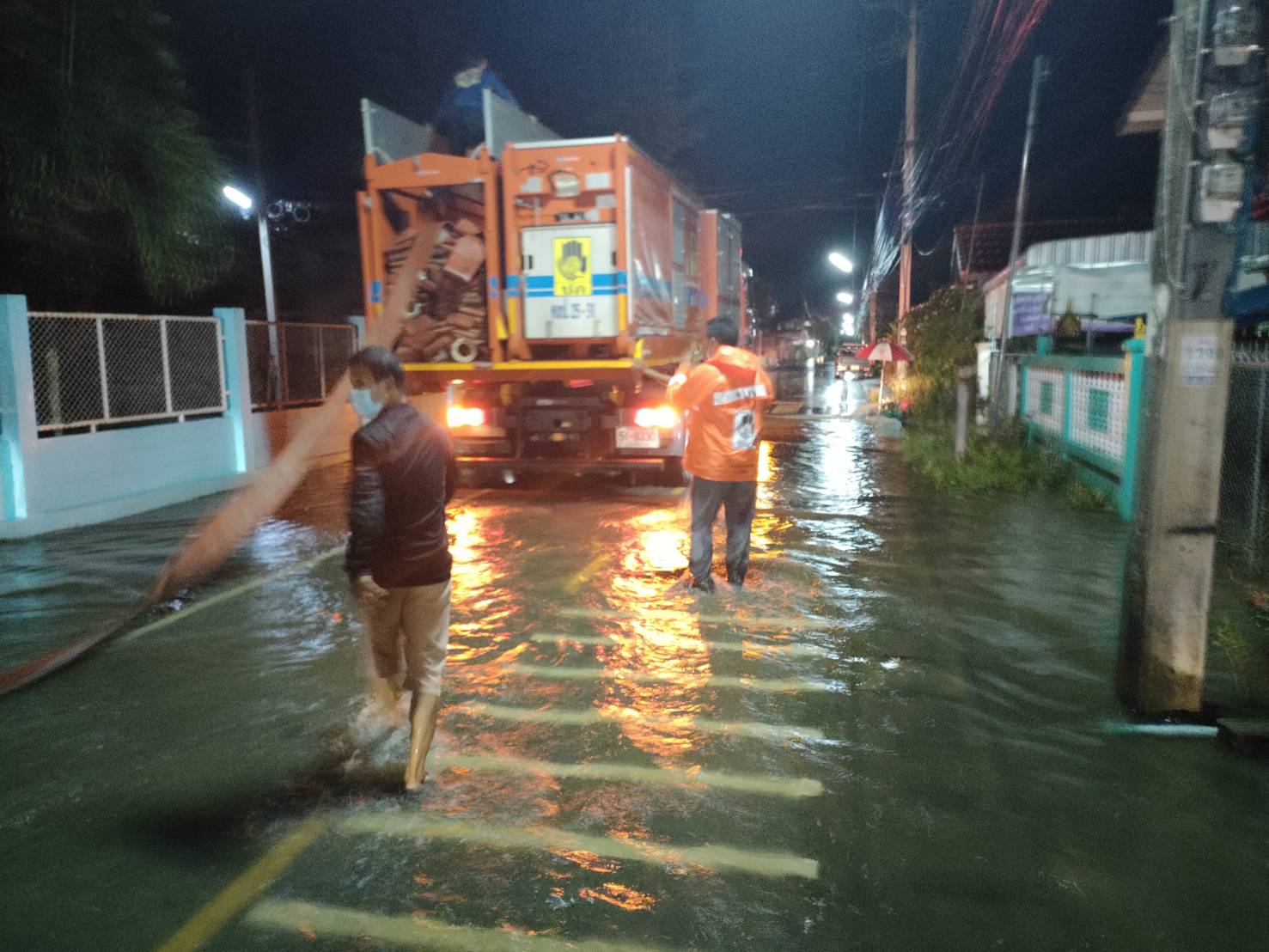 เวลาประมาณ 01.00 น. วันที่ 2 ตุลาคม 2565 เจ้าหน้าที่ศูนย์ ปภ.เขต 10 ลำปาง โดยการอำนวยการของ ว่าที่ ร.ต.ณัฐพงศ์ ฐิตวิกรานต์ ผอ.ศูนย์ฯ ได้เร่งทำการติดตั้งเครื่องสูบน้ำและปฏิบัติงานสูบในเขตพื้นที่เทศบาลตำบลล้อมแรด อำเภอเถินจังหวัดลำปาง หลังเกิดฝนตกหนักและเกิดน้ำท่วมขังสูงทั้งบนถนนและบ้านพัก ทำให้ชาวบ้านได้รับความเดือดร้อน