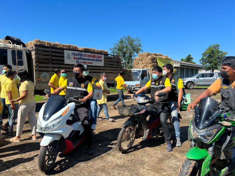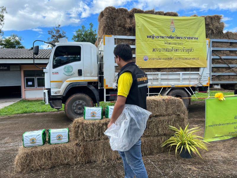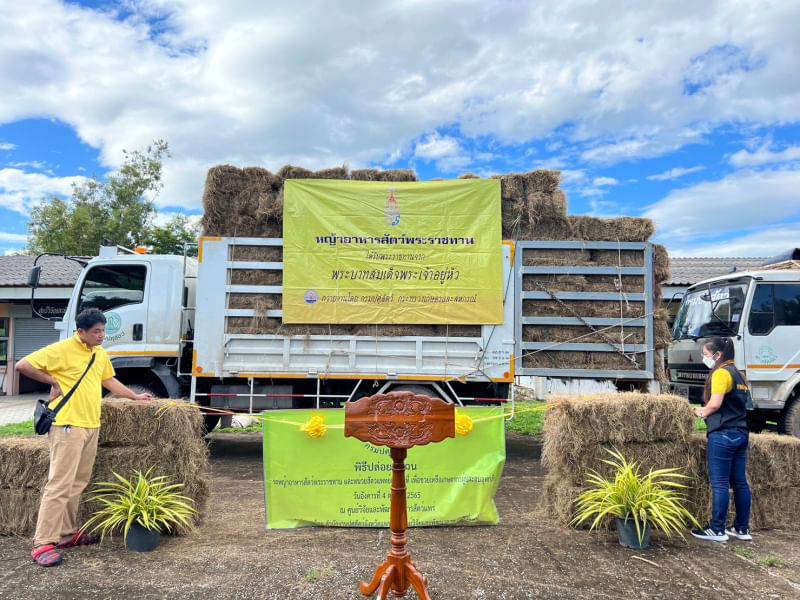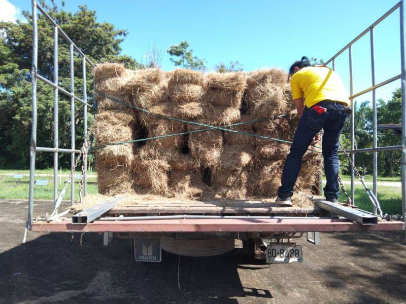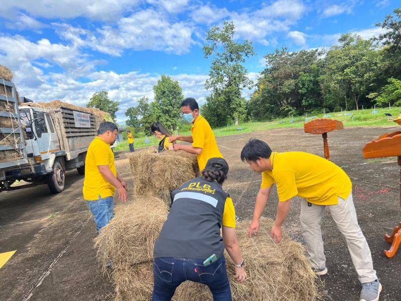 - สนับสนุนเสบียงพืชอาหารสัตว์ (หญ้าแห้ง) จำนวน 500 ฟ่อน