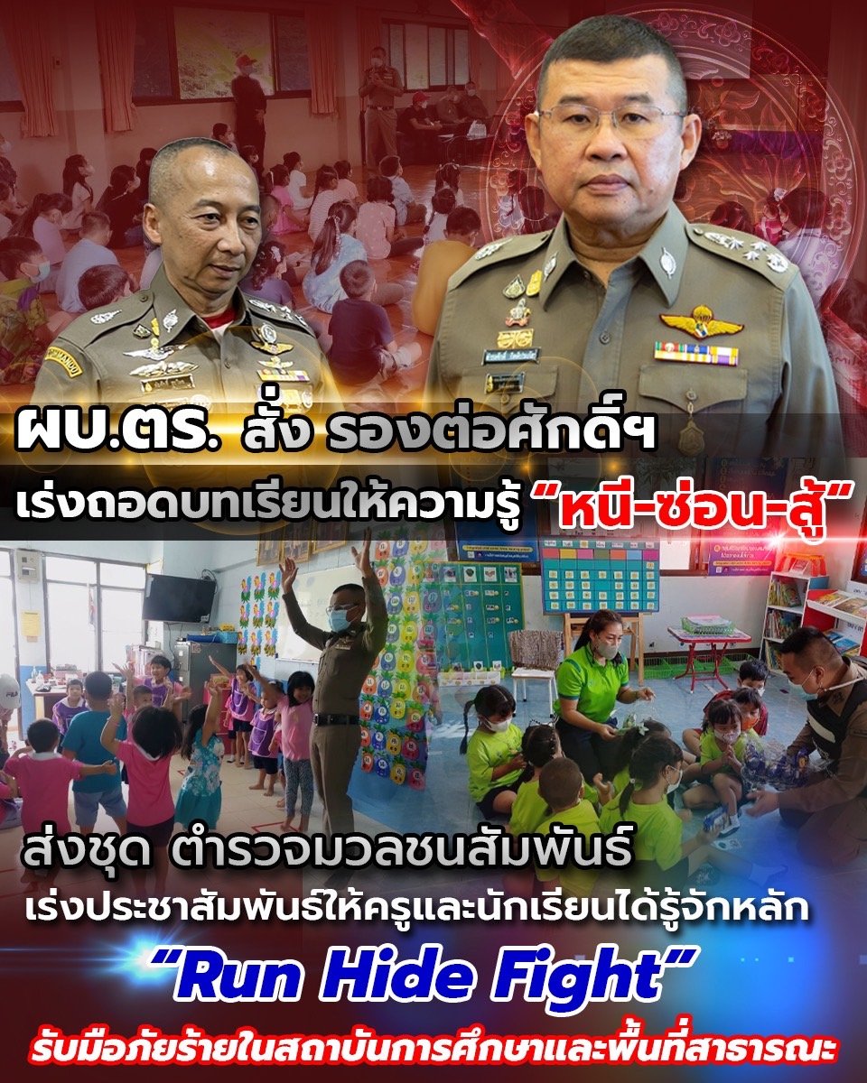 ผบ.ตร. สั่งการ รองต่อศักดิ์ฯ เร่งถอดบทเรียนให้ความรู้ “หนี-ซ่อน-สู้“ รับมือภัยร้ายในสถาบันการศึกษา และพื้นที่สาธารณะ