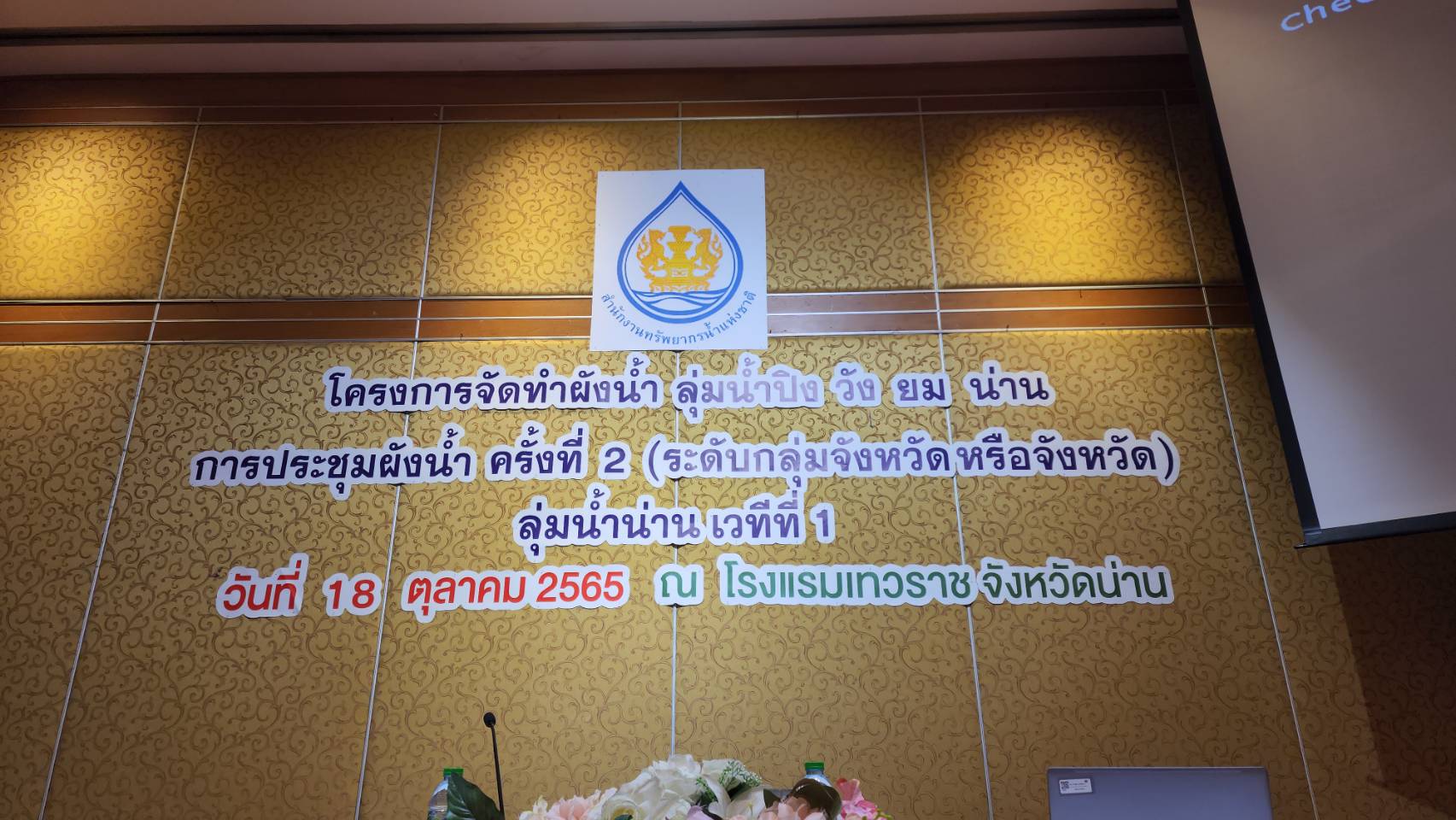 เมื่อวันที่ 18 ตุลาคม 2565 เวลา 09.00 น. ที่ โรงแรมเทวราช อ.เมือง จ.น่าน น.ส.กาญจนวรรณ นิลกลัด วิศวกรชลประทานชำนาญการ ผู้แทนสำนักงานทรัพยากรน้ำแห่งชาติ (สทนช.) เปิดเผยภายหลังการประชุมผังน้ำ ครั้งที่ 2 ว่า สทนช. ร่วมกับกลุ่มบริษัทที่ปรึกษา จัดการประชุมผังน้ำ ครั้งที่ 2 พื้นที่ลุ่มน้ำน่าน เวทีที่ 1 โครงการจัดทำผังน้ำ ลุ่มน้ำปิง วัง ยม น่าน ณ โรงแรมเทวราช เพื่อนำเสนอร่างผังน้ำ ฉบับที่ 1 ให้ทุกภาคส่วนได้รับทราบ พร้อมรับฟังความคิดเห็นและข้อเสนอแนะ เพื่อนำไปประกอบการพิจารณาปรับปรุงจัดทำร่างผังน้ำ และนำมารับฟังความคิดเห็นในการประชุมครั้งถัดไป โดยได้รับเกียรติจาก นายกฤชเพชร เพชระบูรณิน รองผู้ว่าราชการ จ.น่าน เป็นประธานเปิดการประชุม ซึ่งมีผู้เข้าร่วมการประชุมประกอบด้วย คณะกรรมการลุ่มน้ำ ผู้แทนหน่วยงานของรัฐ องค์กรปกครองส่วนท้องถิ่น และประชาชนที่เกี่ยวข้อง