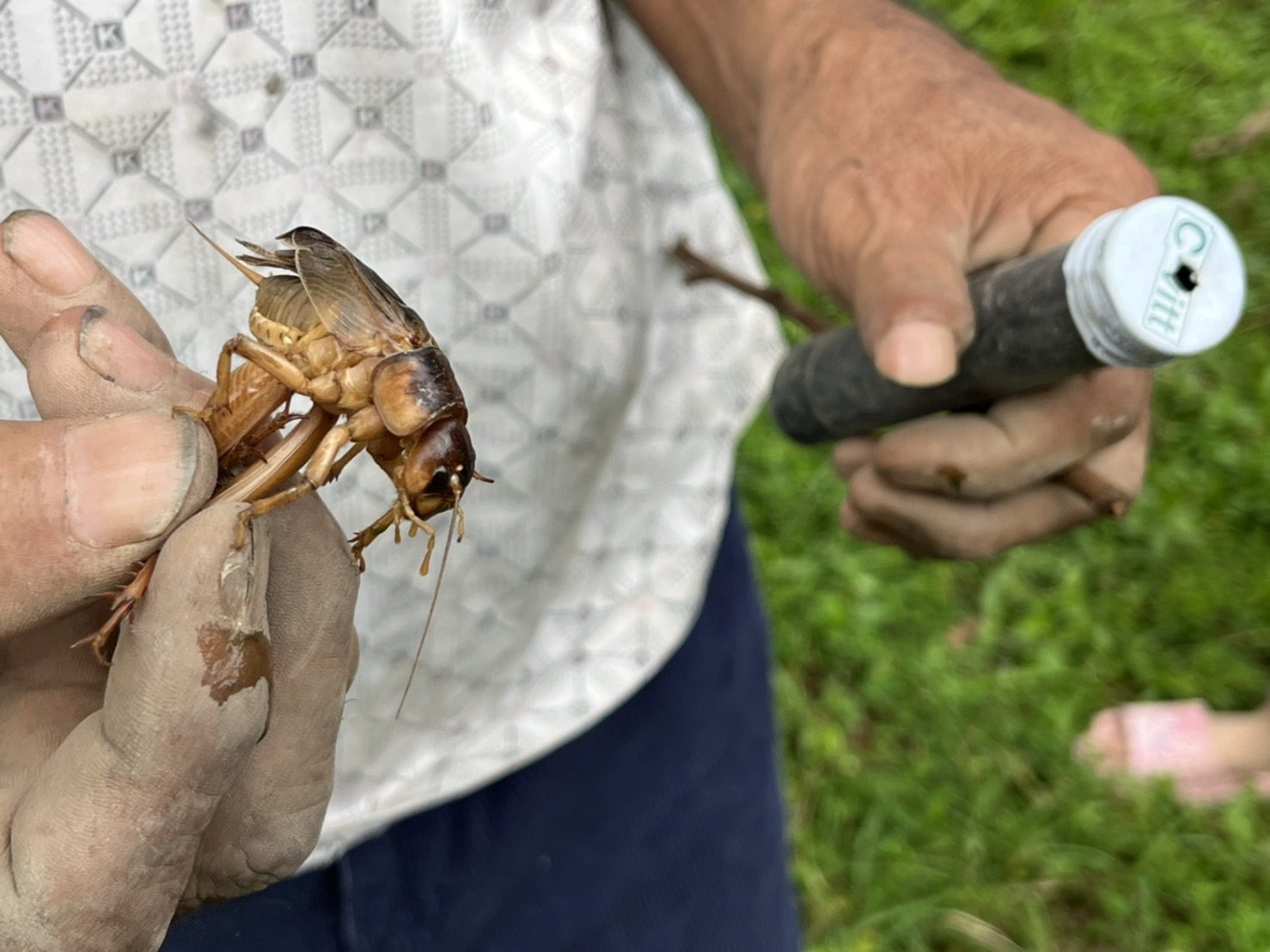 จิ้งกุ่งที่บ้านตีนธาตุ จะตัวใหญ่ยักษ์ ส่วนอุปกรณ์ดักจับแบบง่ายๆต้นทุนไม่กี่ร้อยบาท ใช้ท่อพลาสติ๊ก 6 หุน ยาวประมาณ 1 คืบ มีลวดเป็นแร้วดักในกระบอก จิ้งกุงจะปิดตัวในหลุมด้วยดินในช่วงเวลากลางวัน กลางคืนโผล่จากดินโผล่ขึ้นมาออกหากินและร้องเสียงดัง เอากับดักไปเสียบที่ปากหลุมที่อยู่ใต้โคนต้นลำไย ทิ้งไว้ประมาณ 20 -30 นาที ตัวจิ้งกุ่งเห็นแสงที่เจาะไว้ที่ปลายกระบอกท่อจะออกมา เพื่อเอาดินปิดหลุมไม่ให้สัตว์อื่นเข้าไปรบกวนในหลุม พอจิ้งกุ่งออกมาก็จะติดแร้ว จากนั้นชาวบ้านมาเก็บแร้วก็จะเห็นหนวดของจิ้งกุ่งโผล่ออกมาที่รูกระบอก ก็เก็บไปเป็นอาหาร
